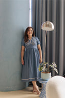 Embroidered Smocked Back Midi Dress (Cornflower Bloom)
