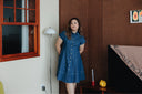 Smocked-back Soft Denim Dress (Fresh Blue)