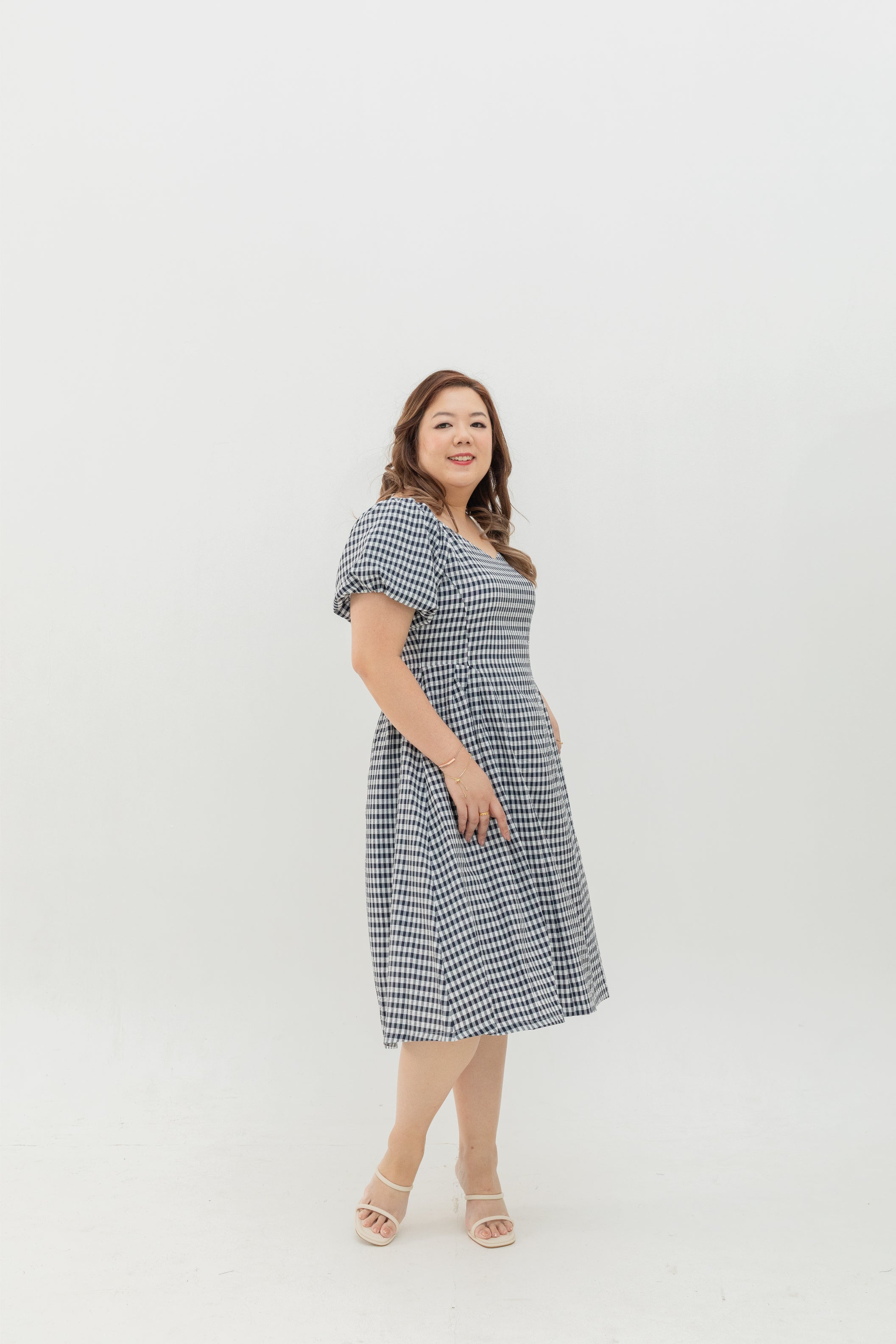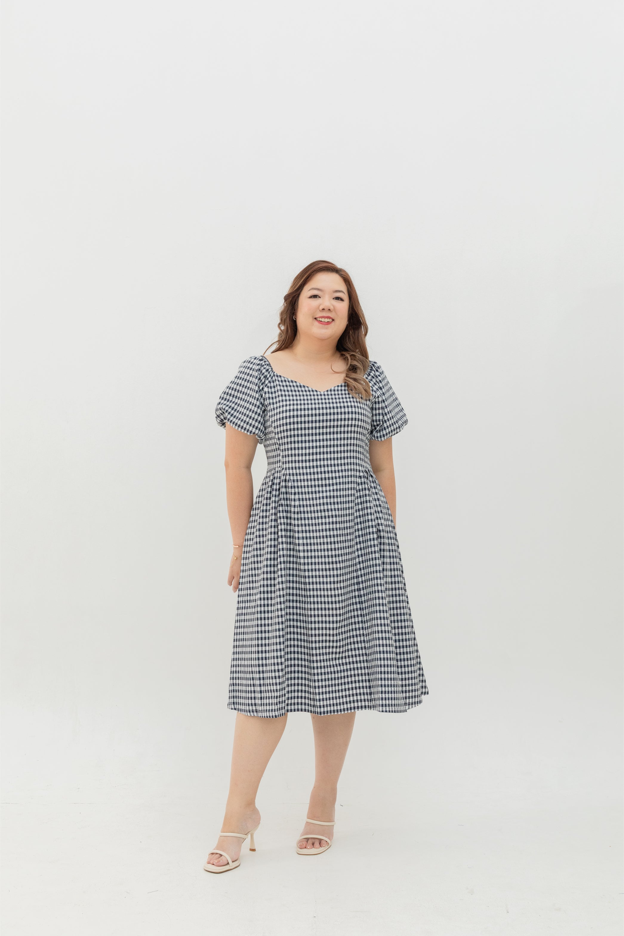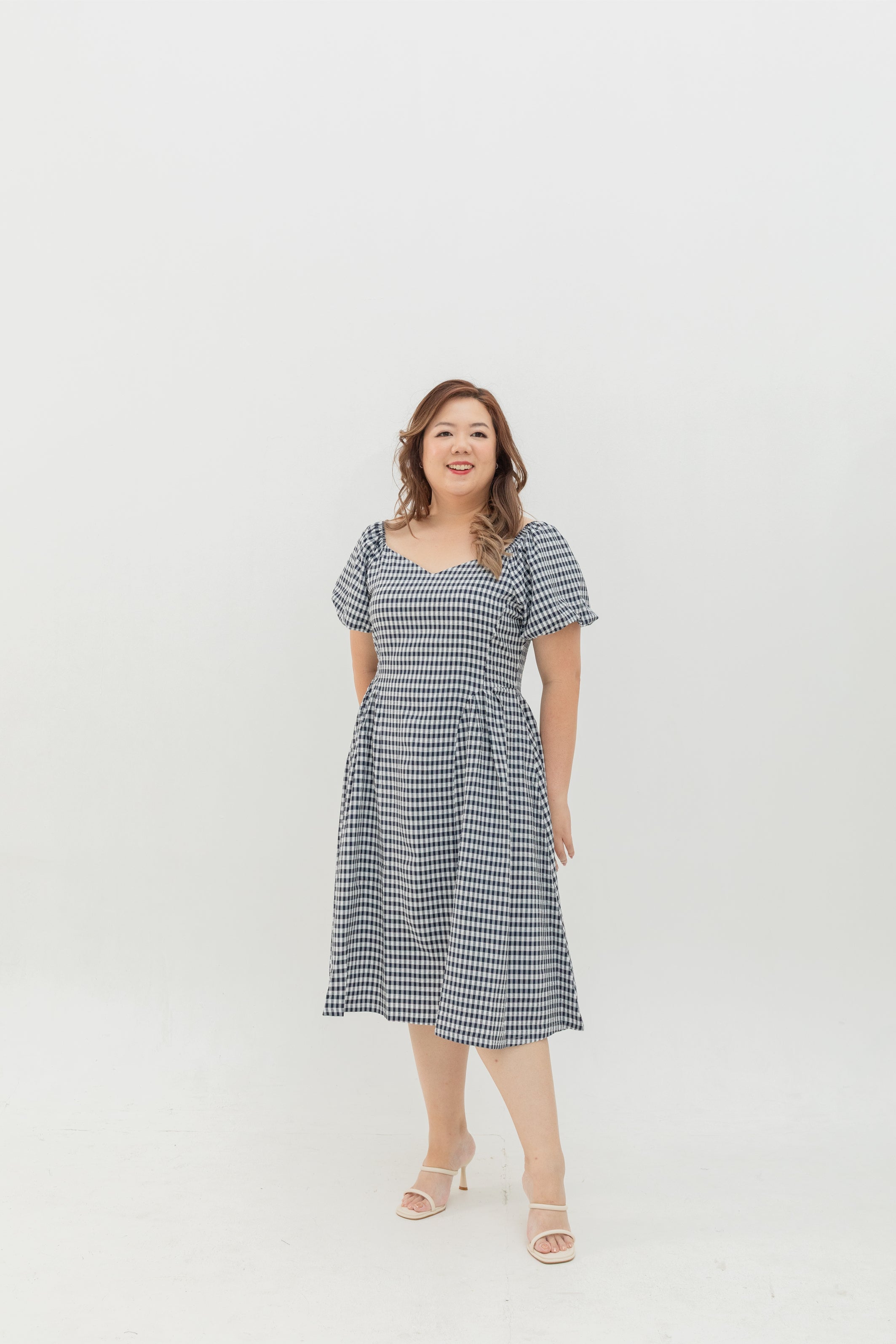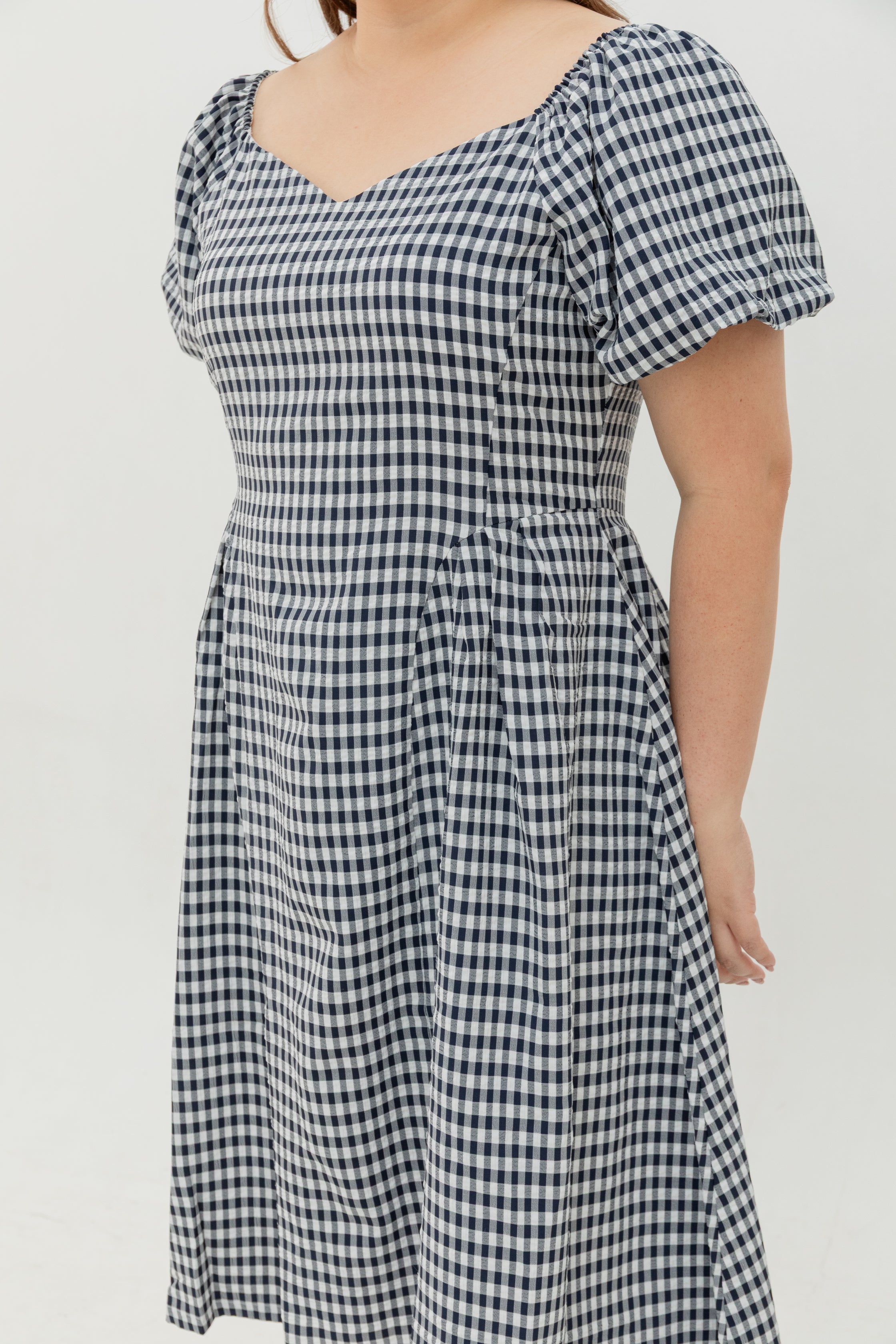 Aurora Sweetheart Midi (Dark Navy Gingham)