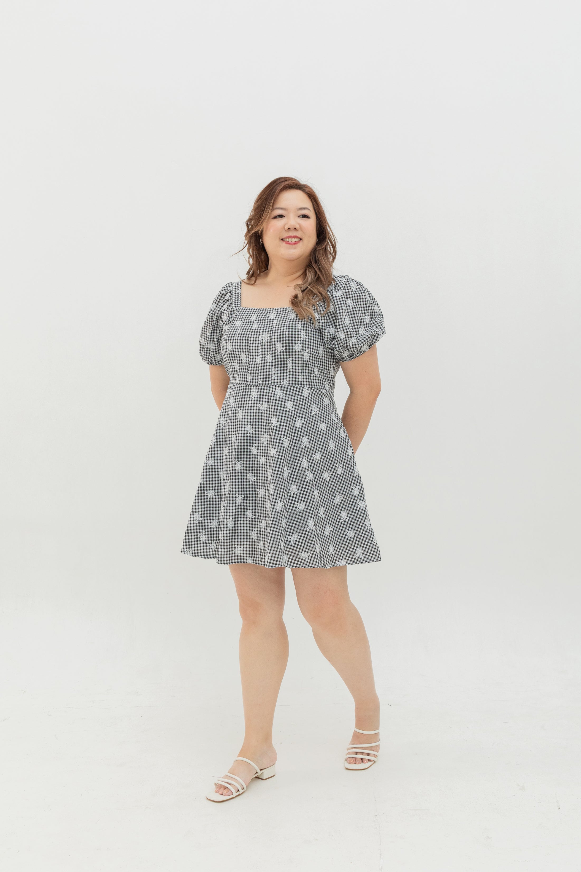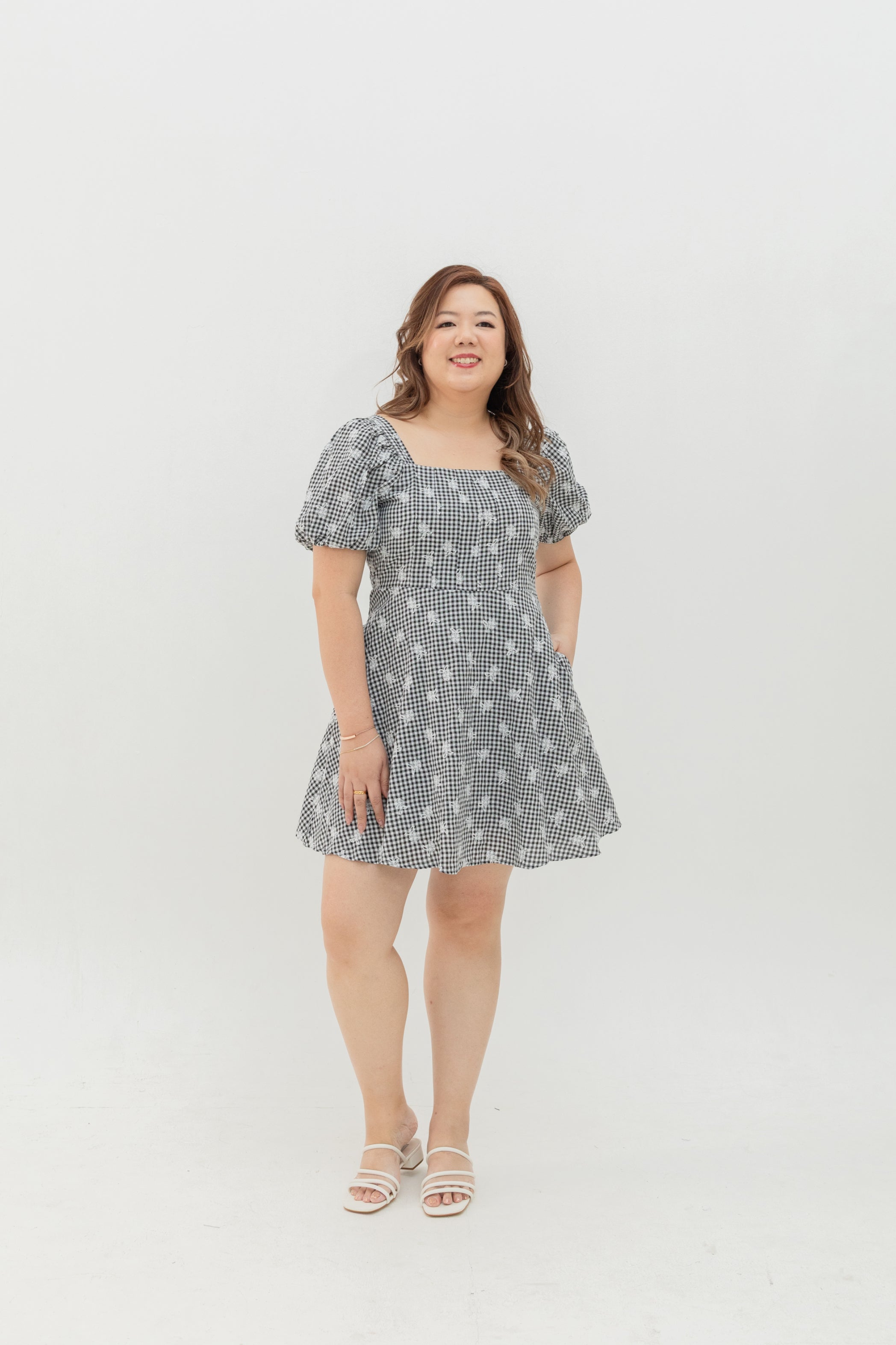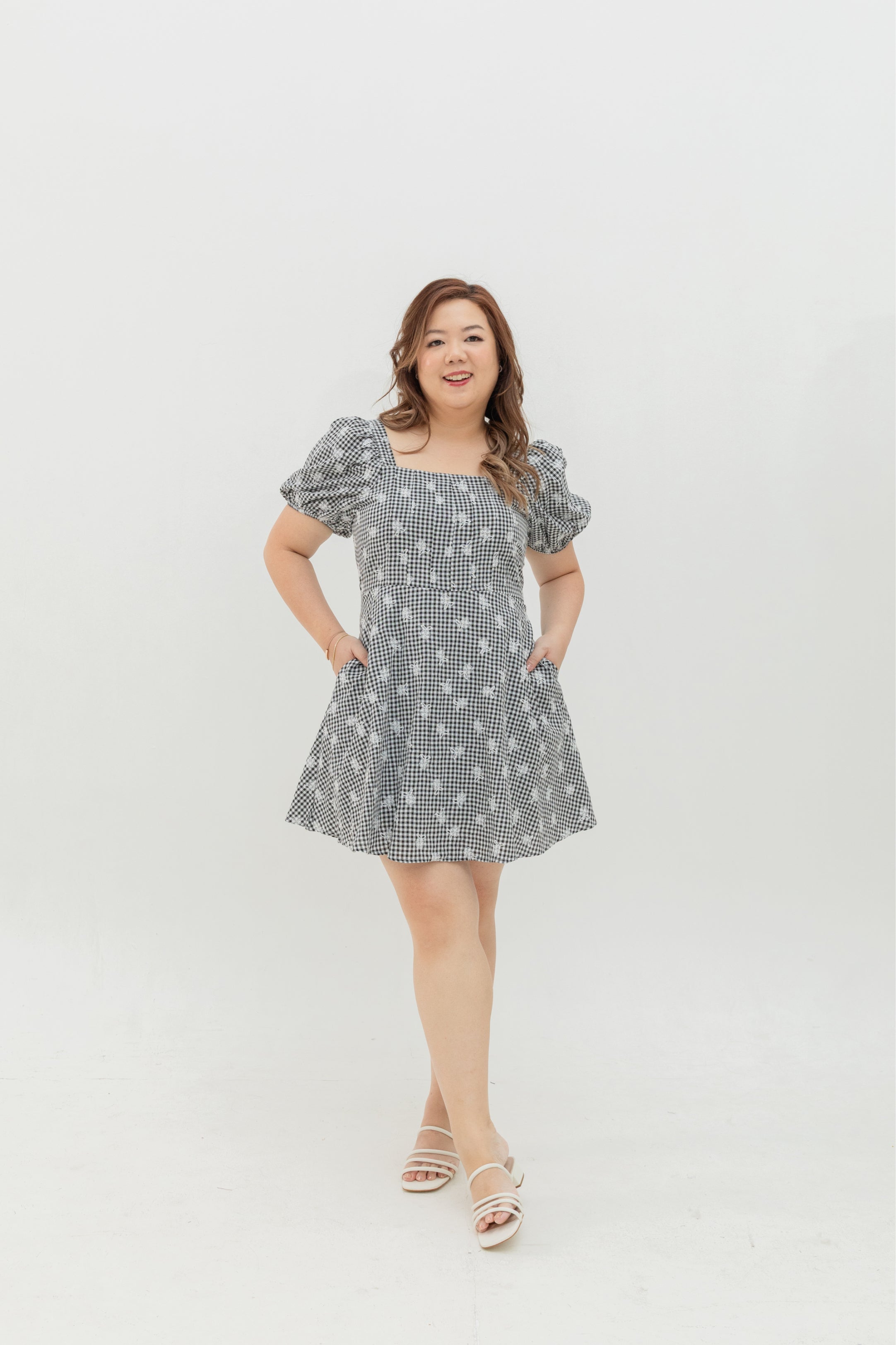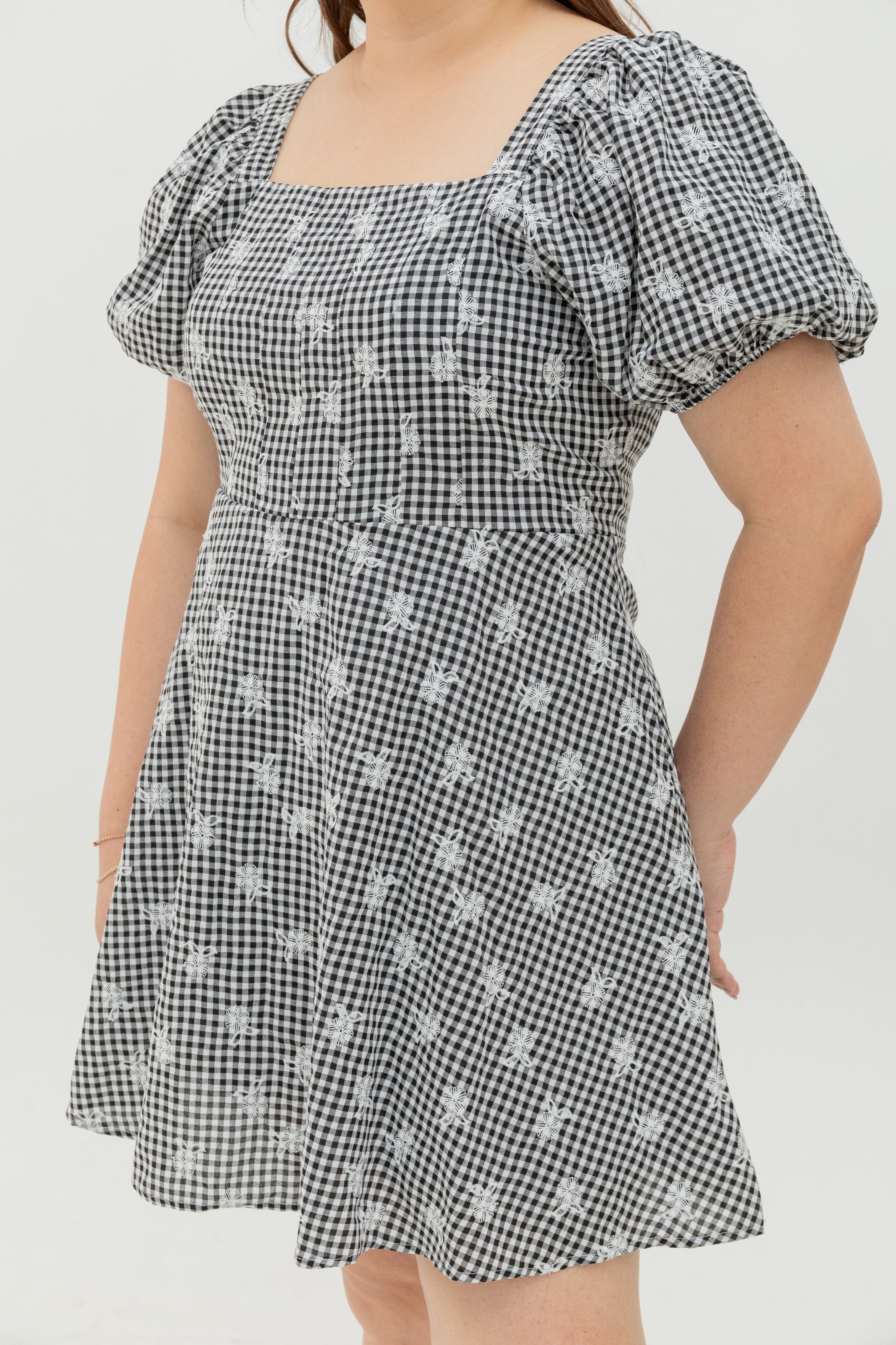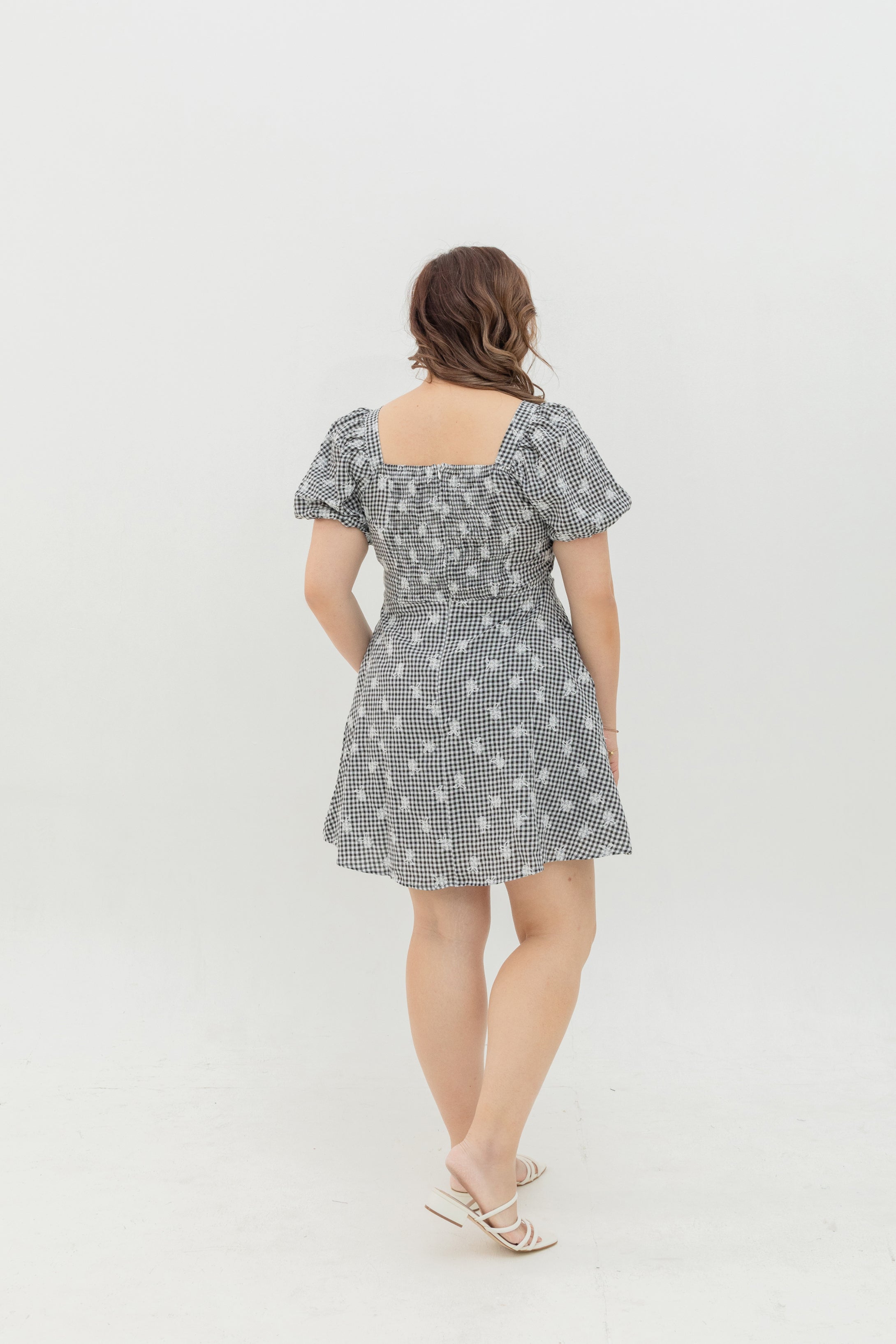 Carefree Romper-Dress (Midnight Check Embroidery)