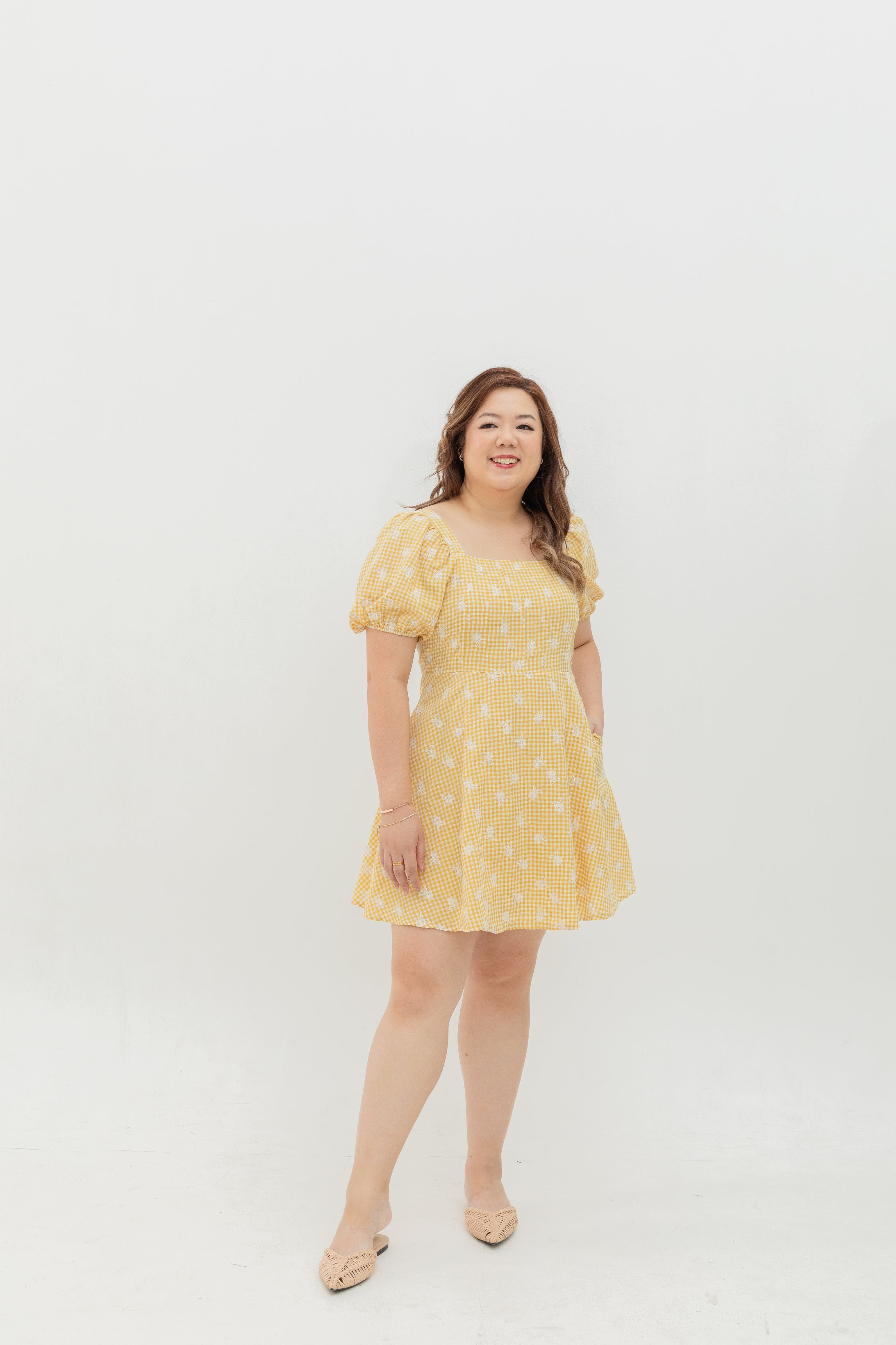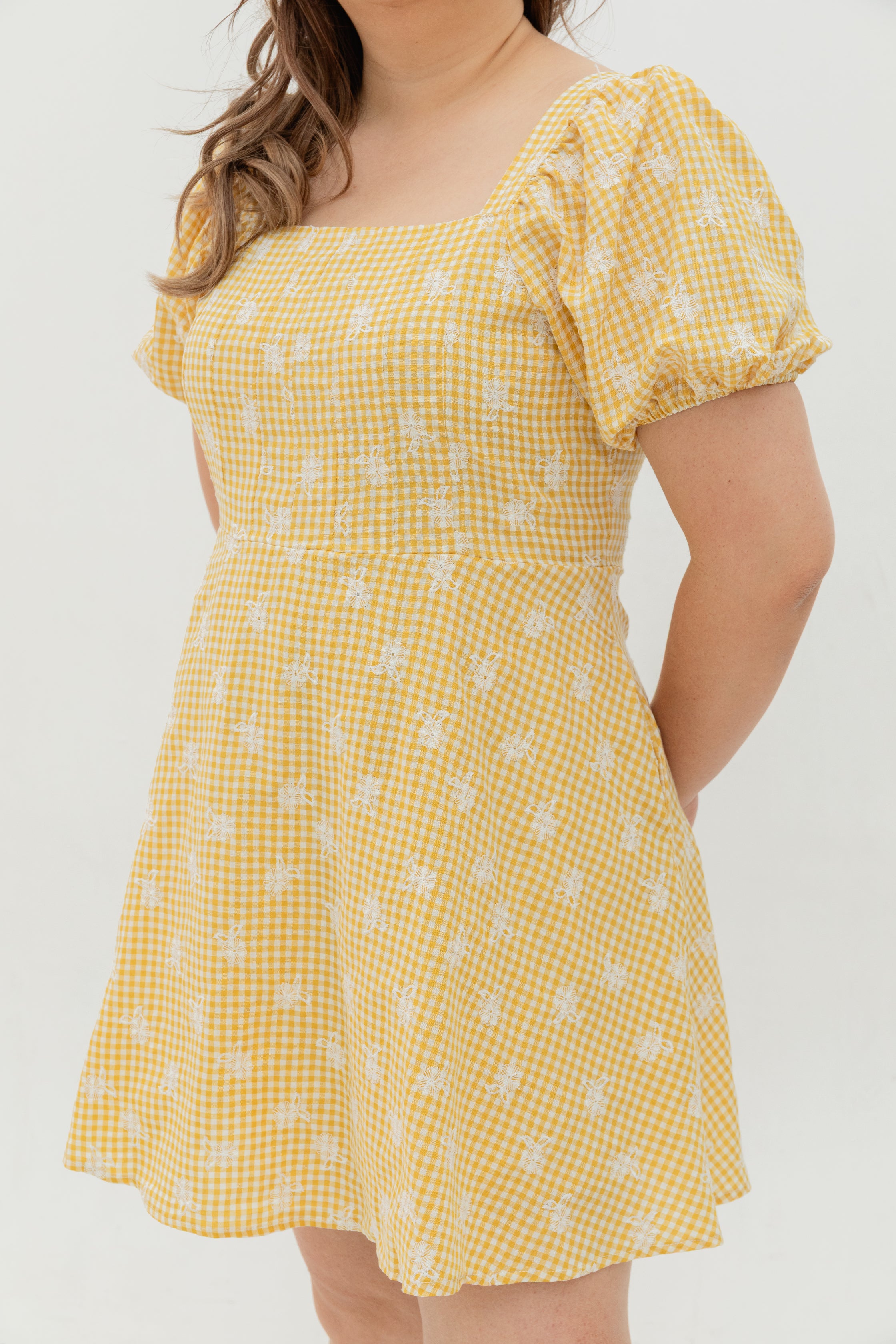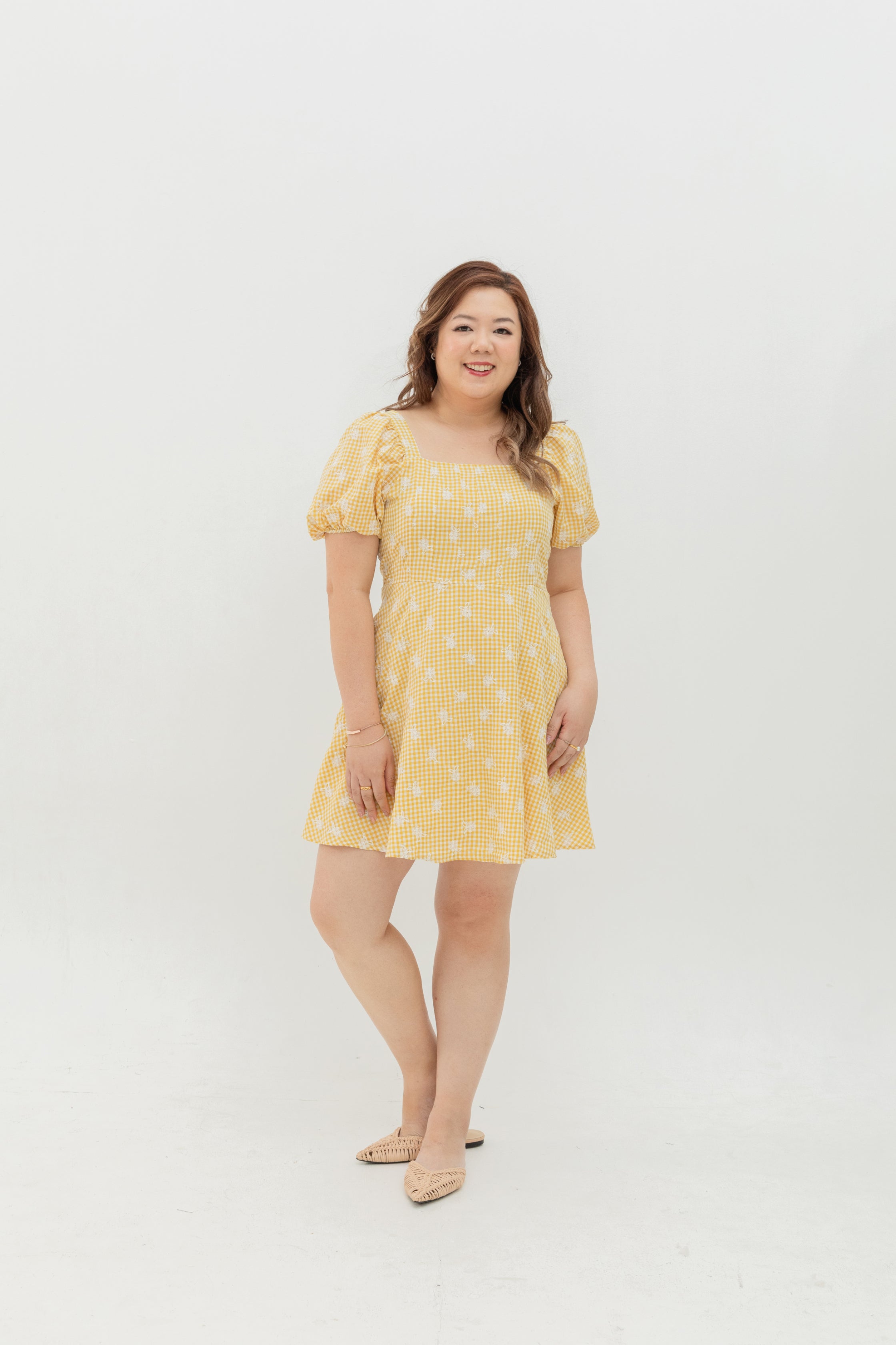 • Square Neckline & Puff Sleeves: Soft structure that flatters the shoulders and décolletage.