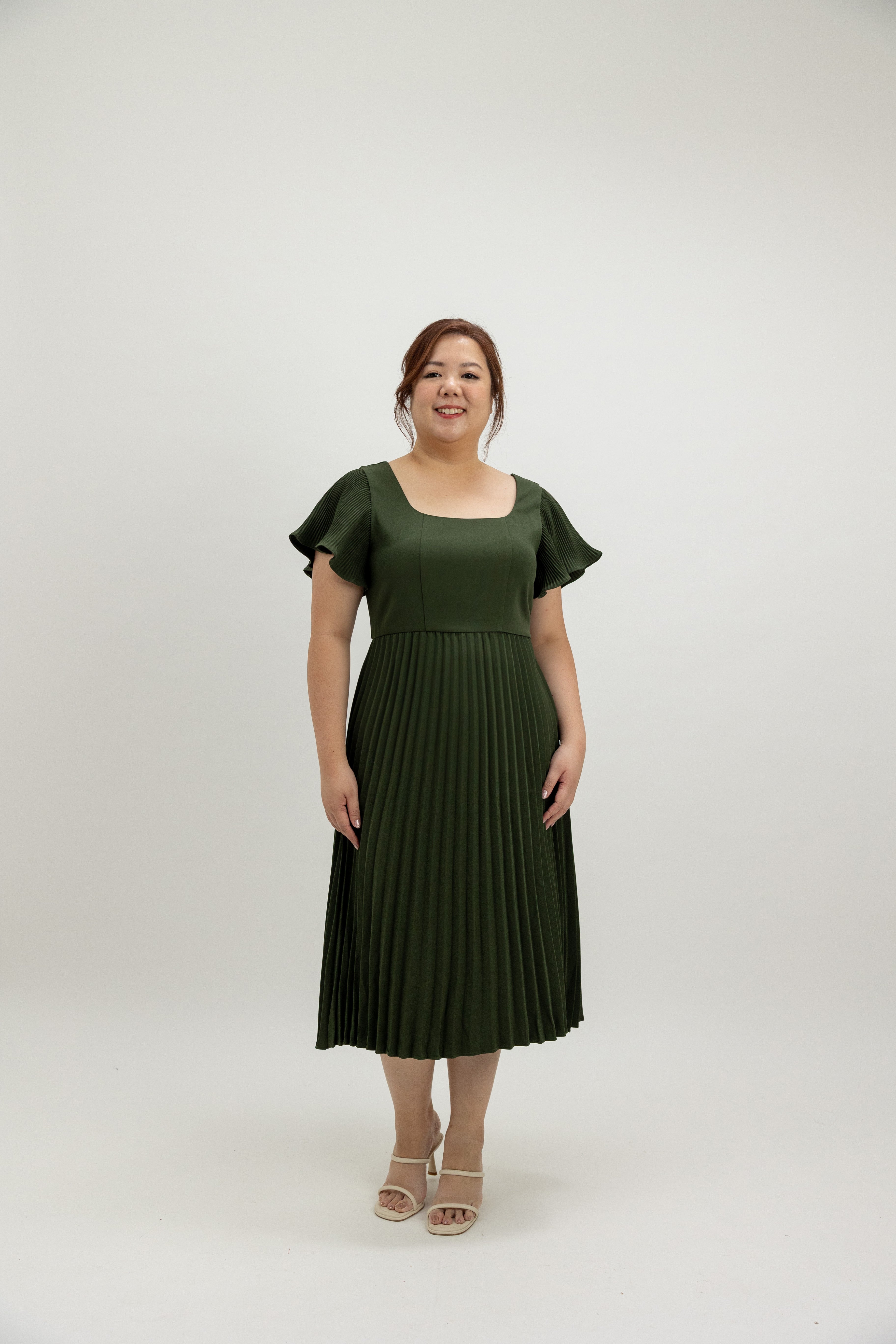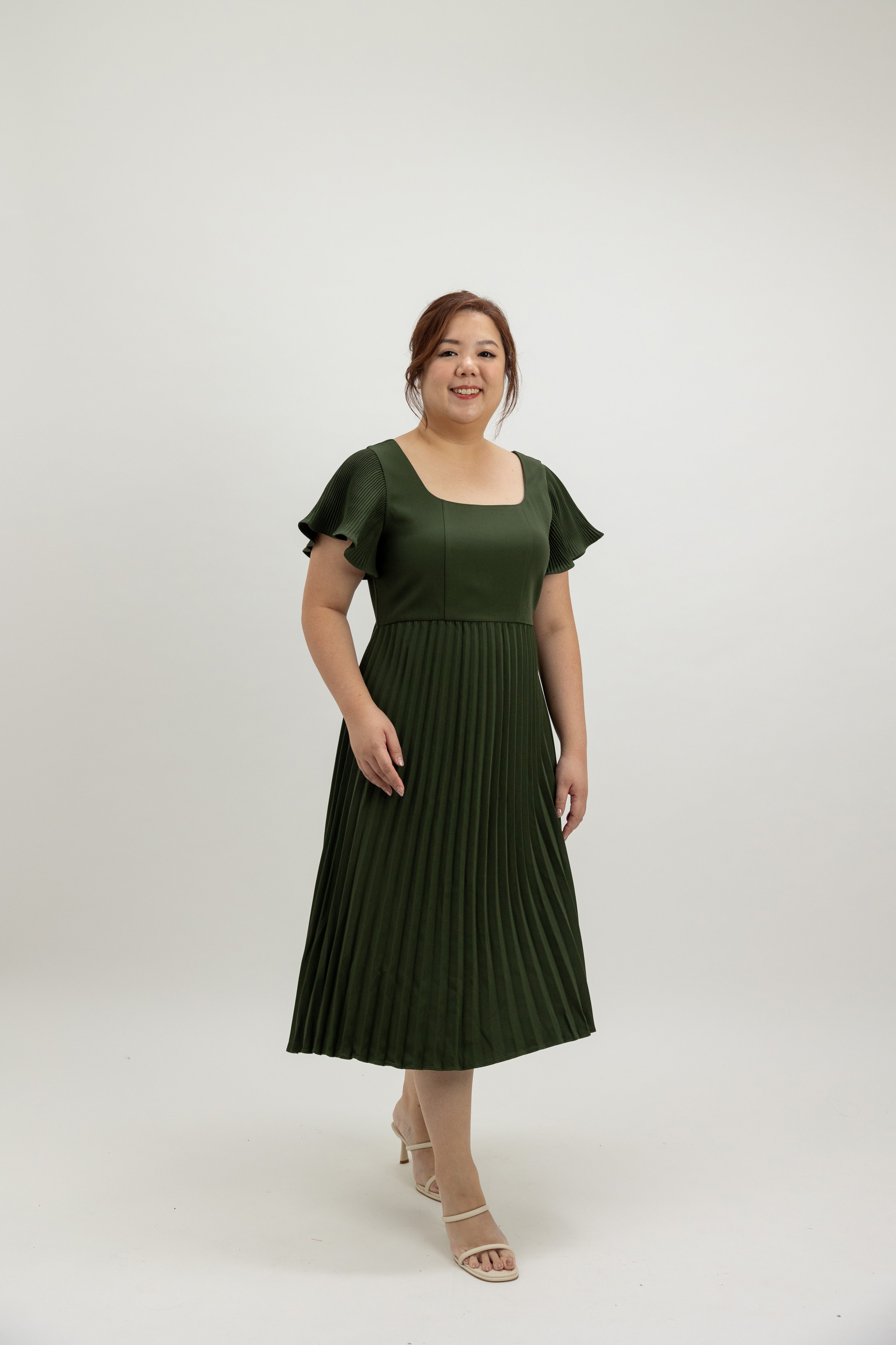 Classic Pleated Midi Dress (Evergreen)