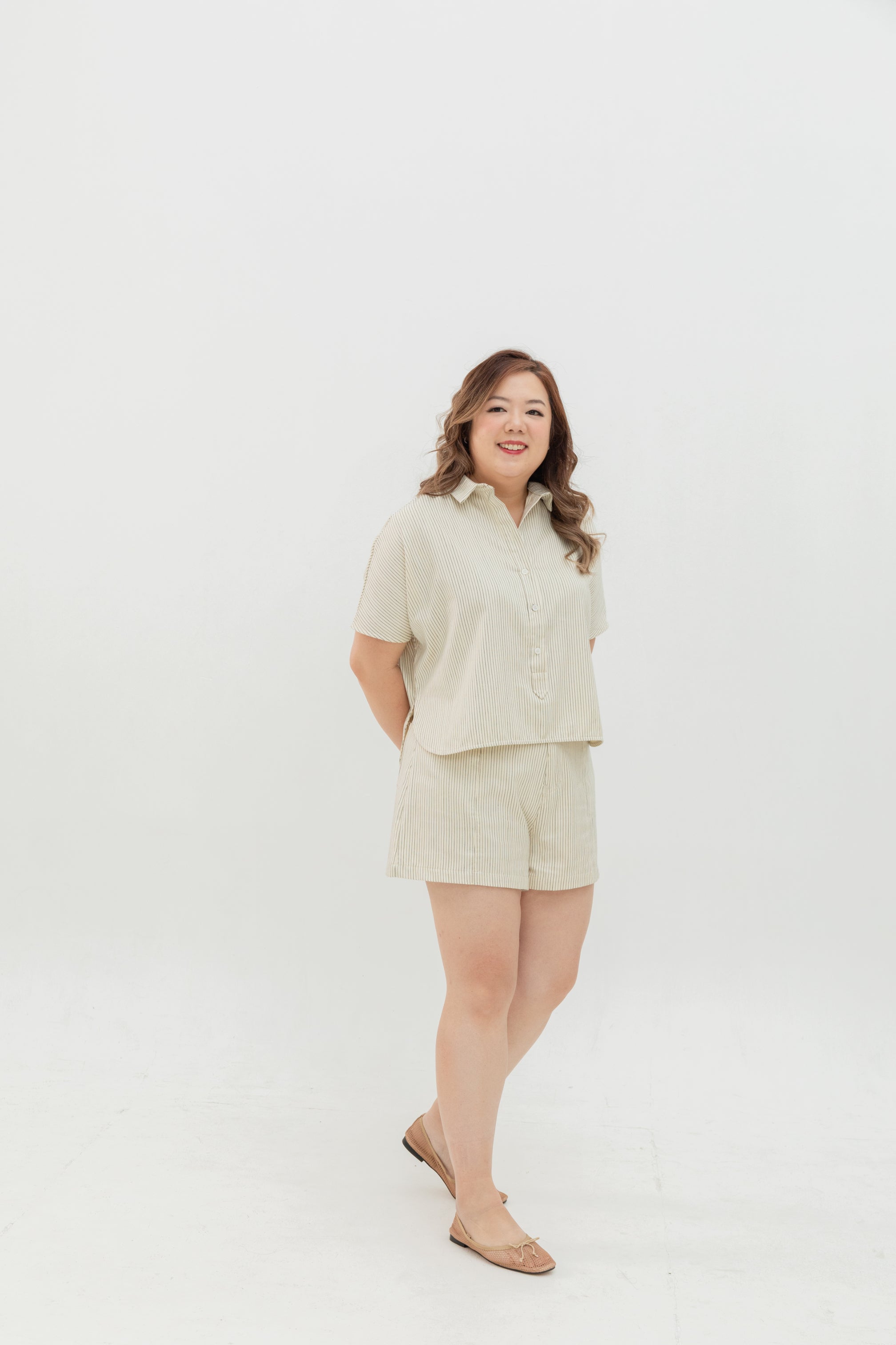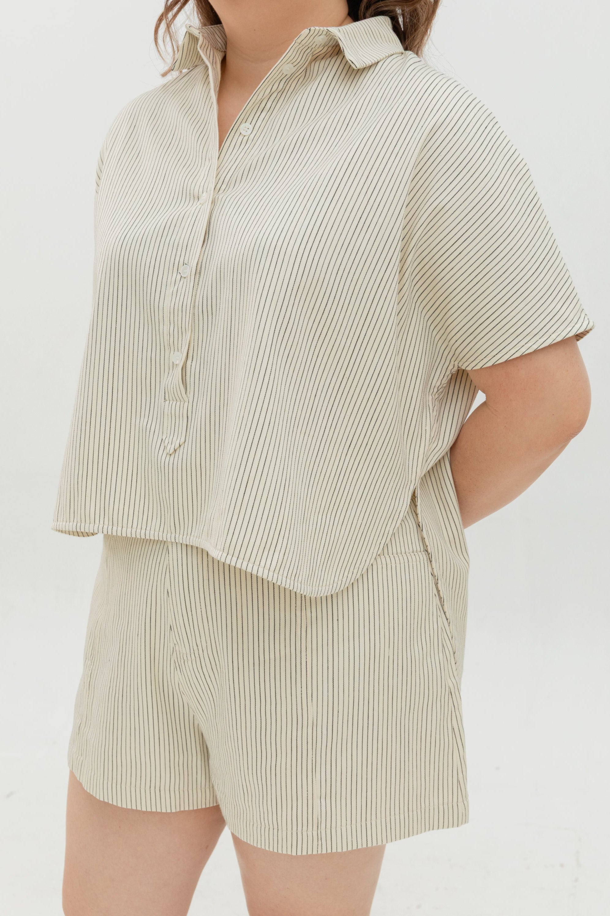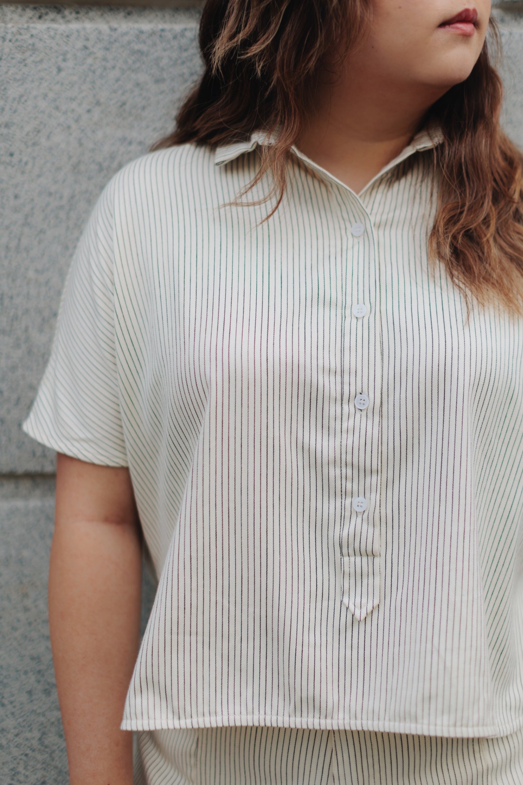 Finished with a smart collar and half-placket button detail, this versatile shirt transitions seamlessly from workday chic to weekend casual. Pair it with the matching Atlas Stripes Shorts for a coordinated set or style it with tailored trousers and denim for understated elegance.