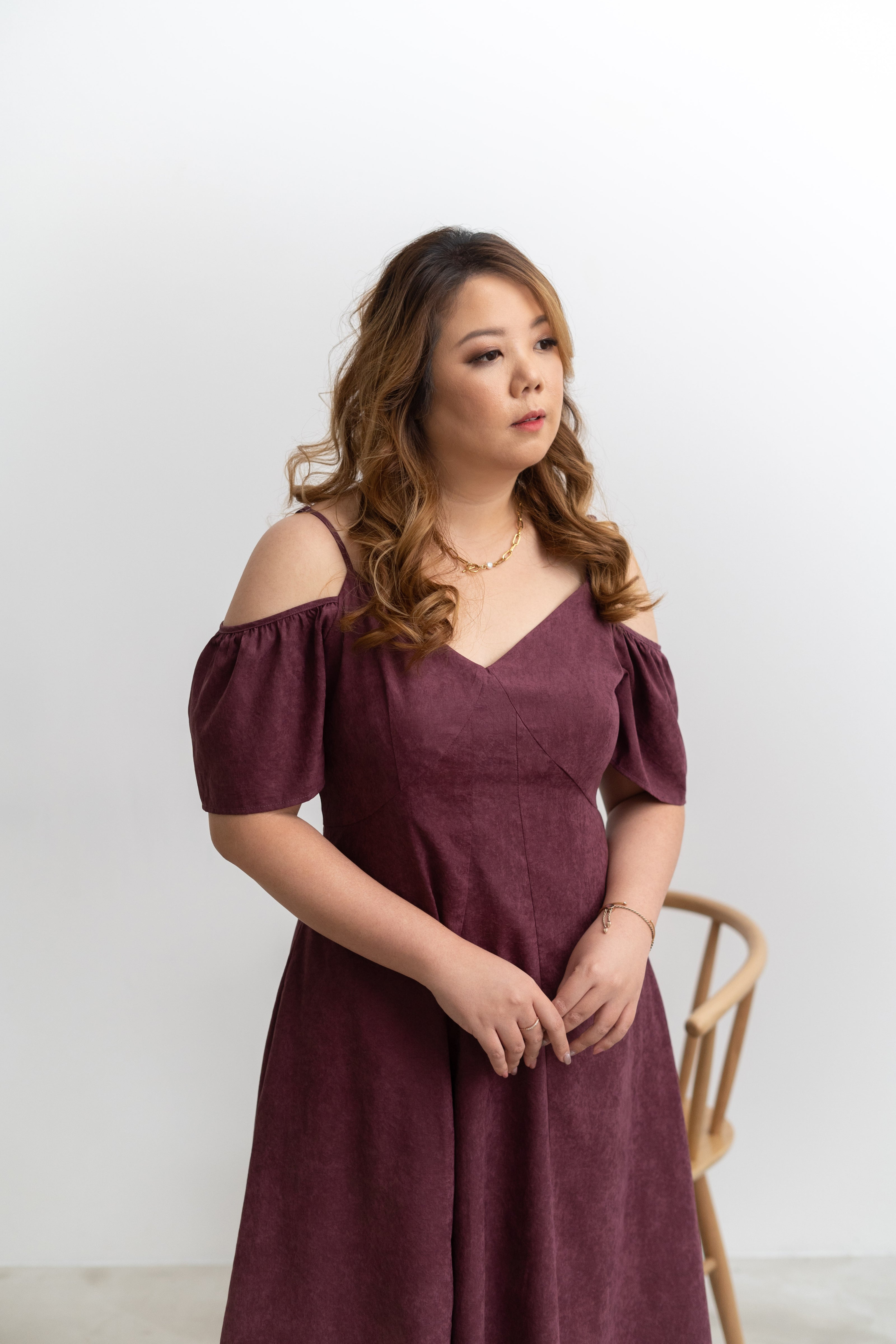 Cold-Shoulder Panel Dress (Violet Plum)