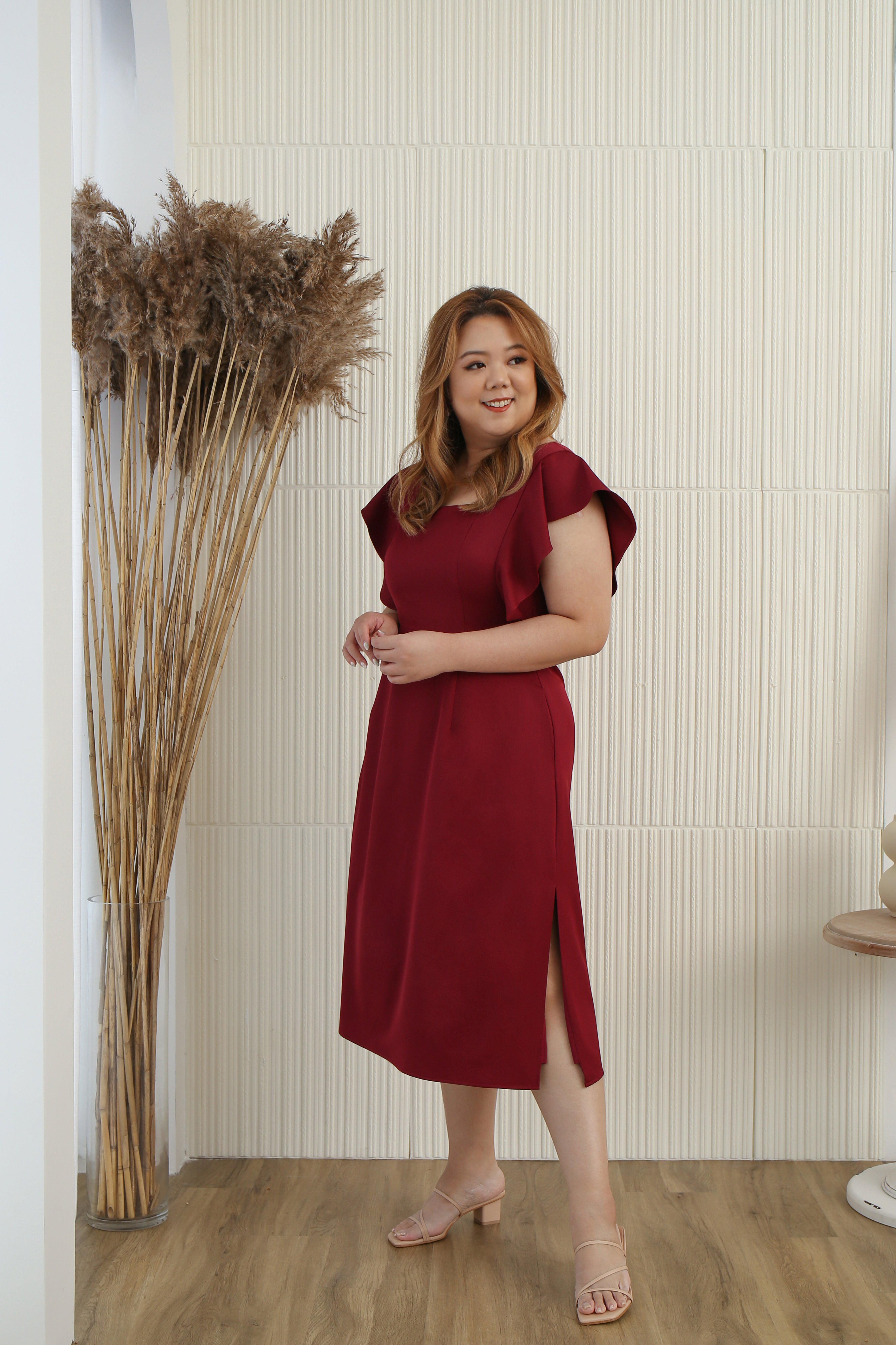Side Slit Midi Dress - (Maroon)