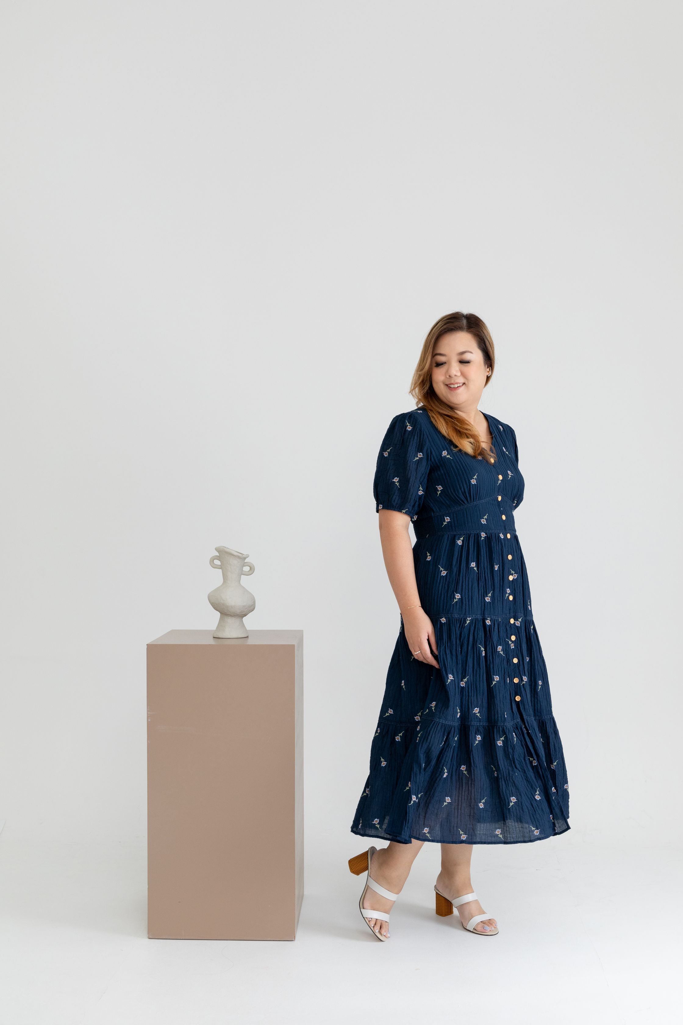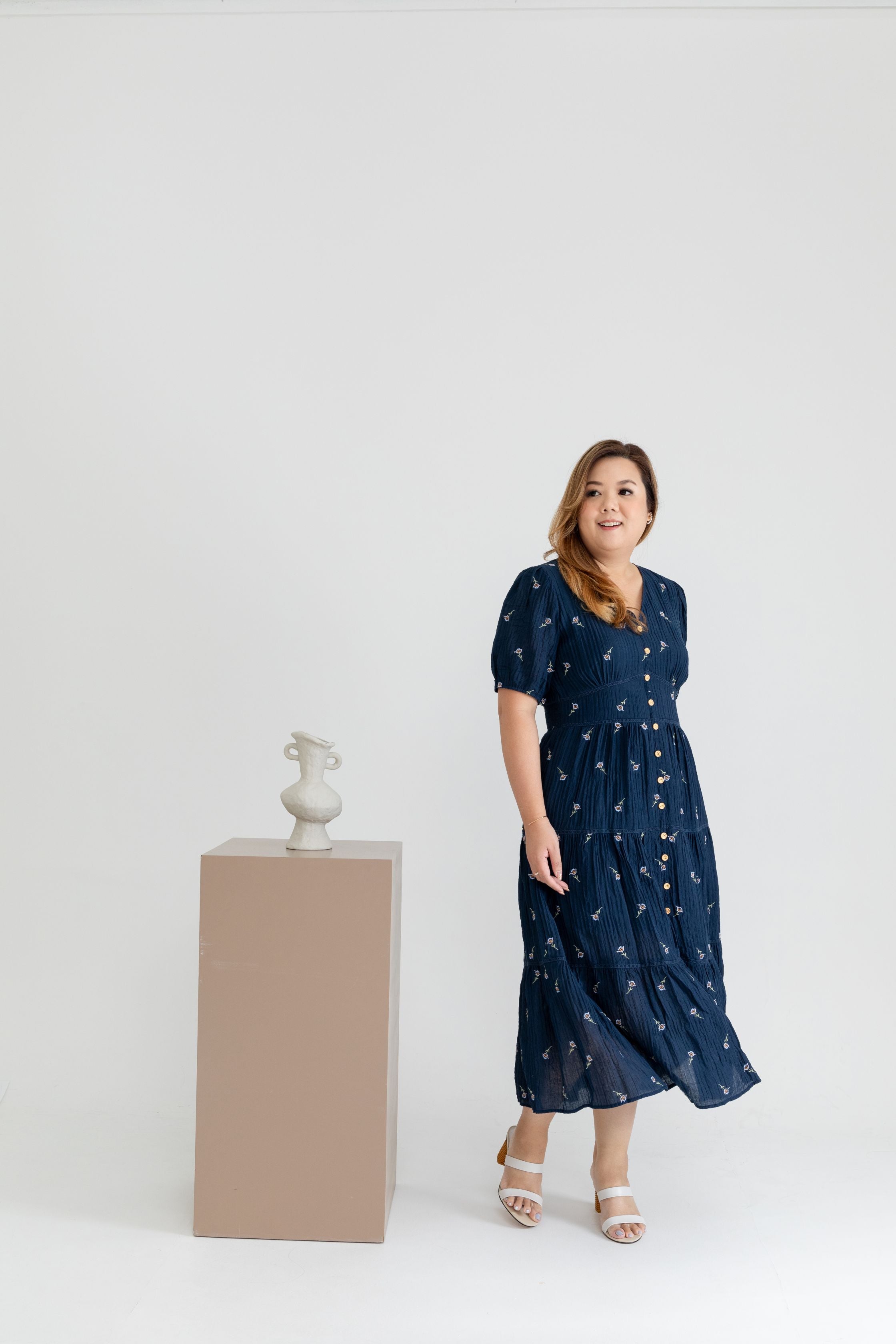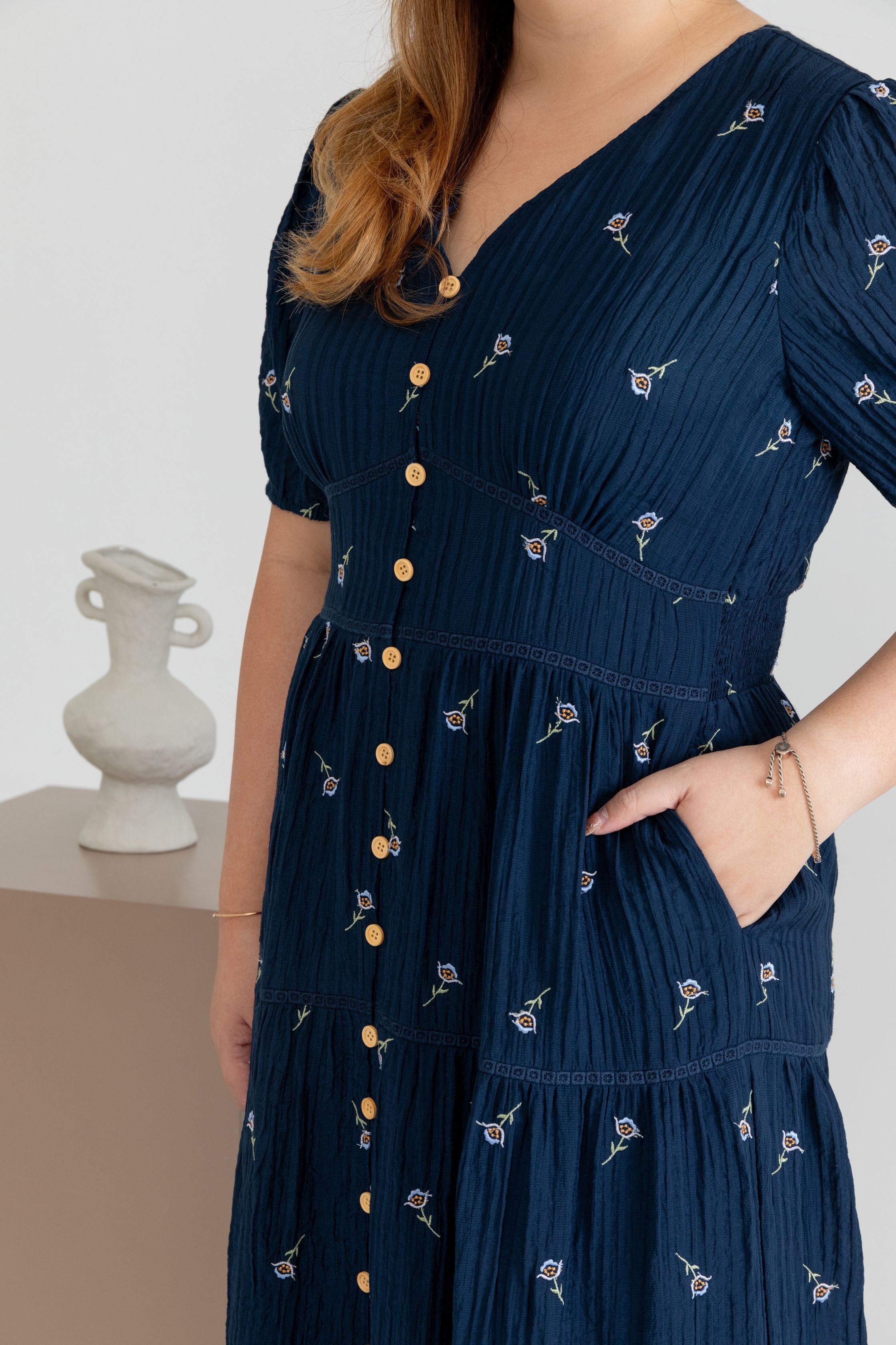 Embroidered Smocked Back Midi Dress (Floret) - Online Exclusive