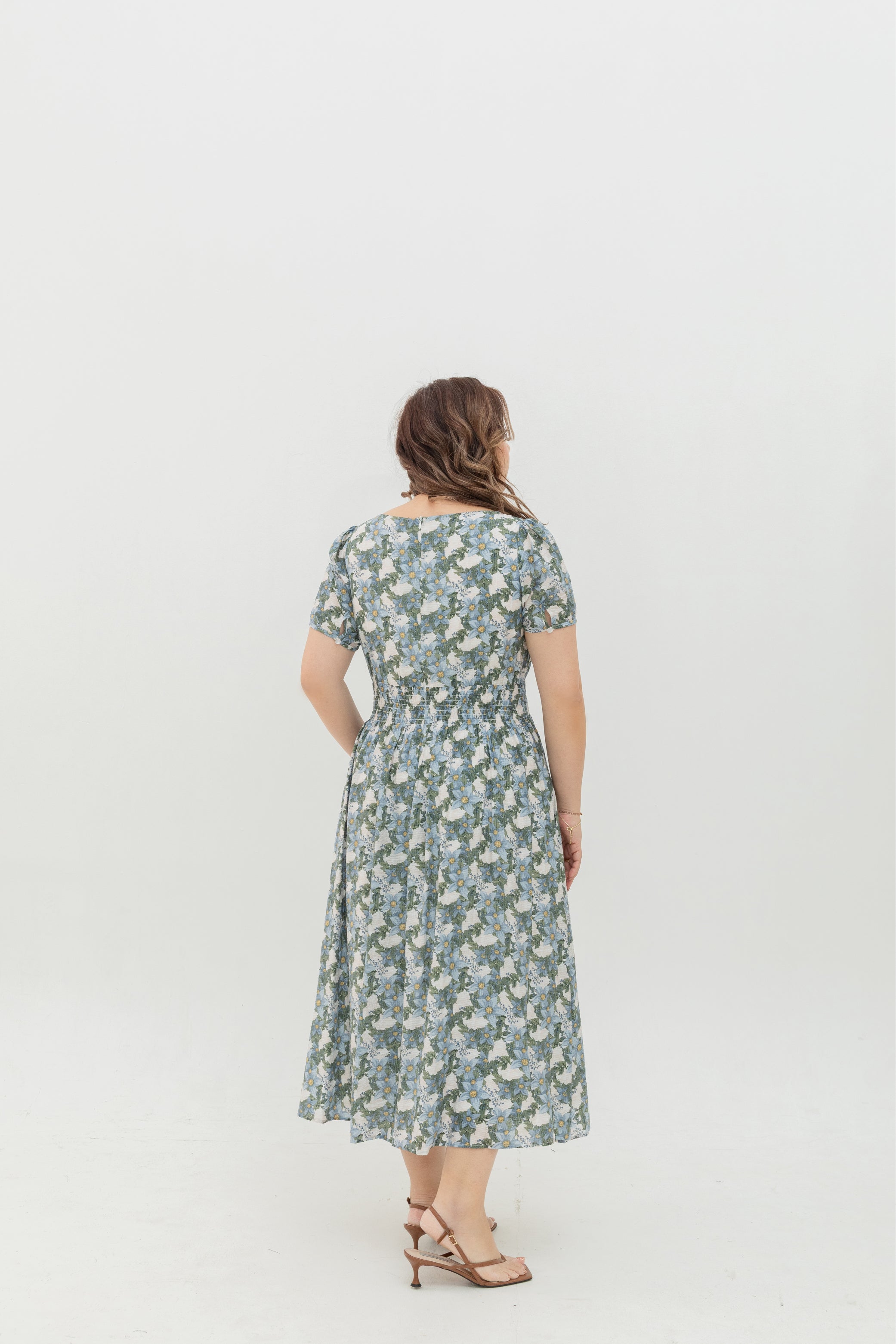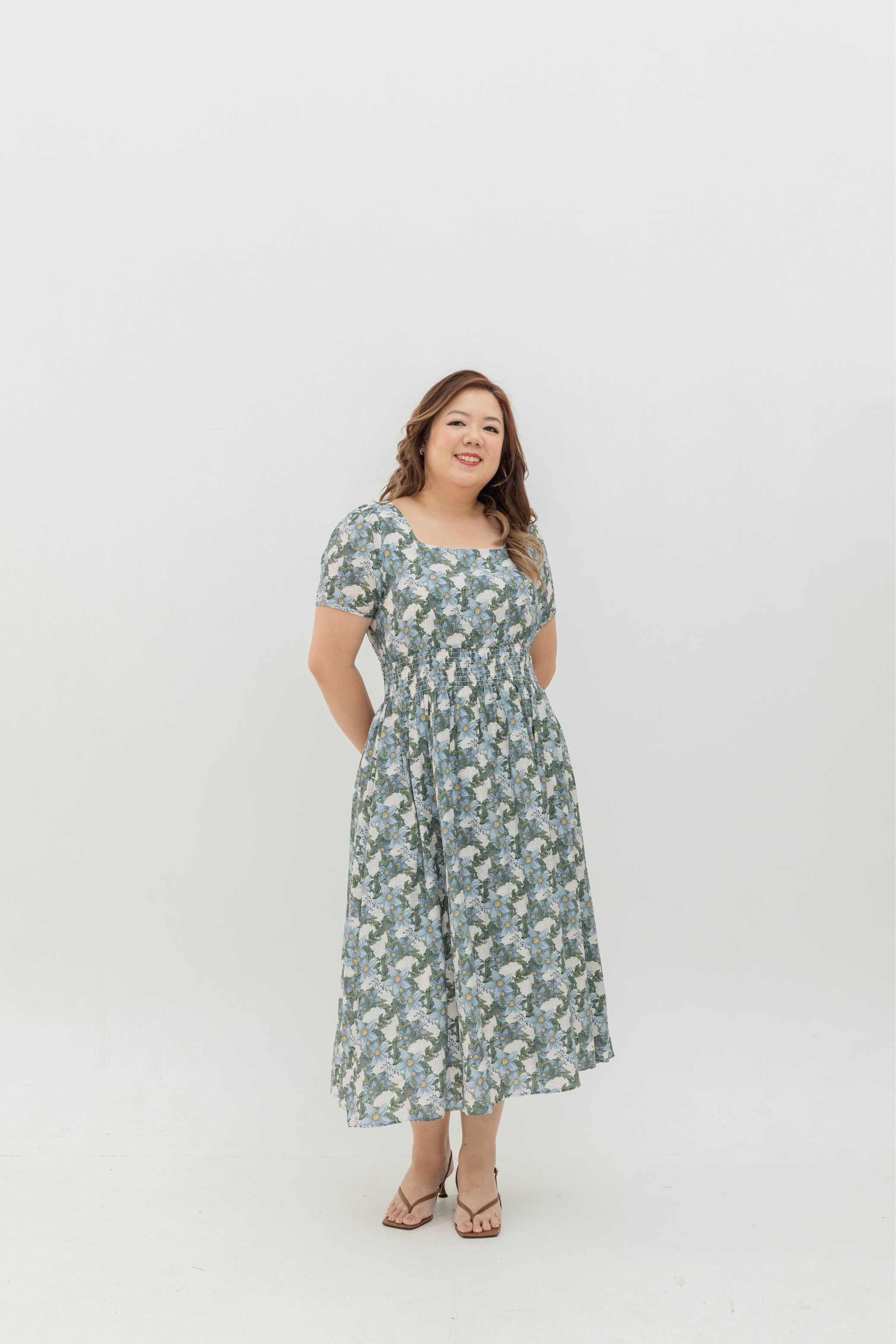 Fieldnote Smocked Waist Midi Dress (Frosted Petals)