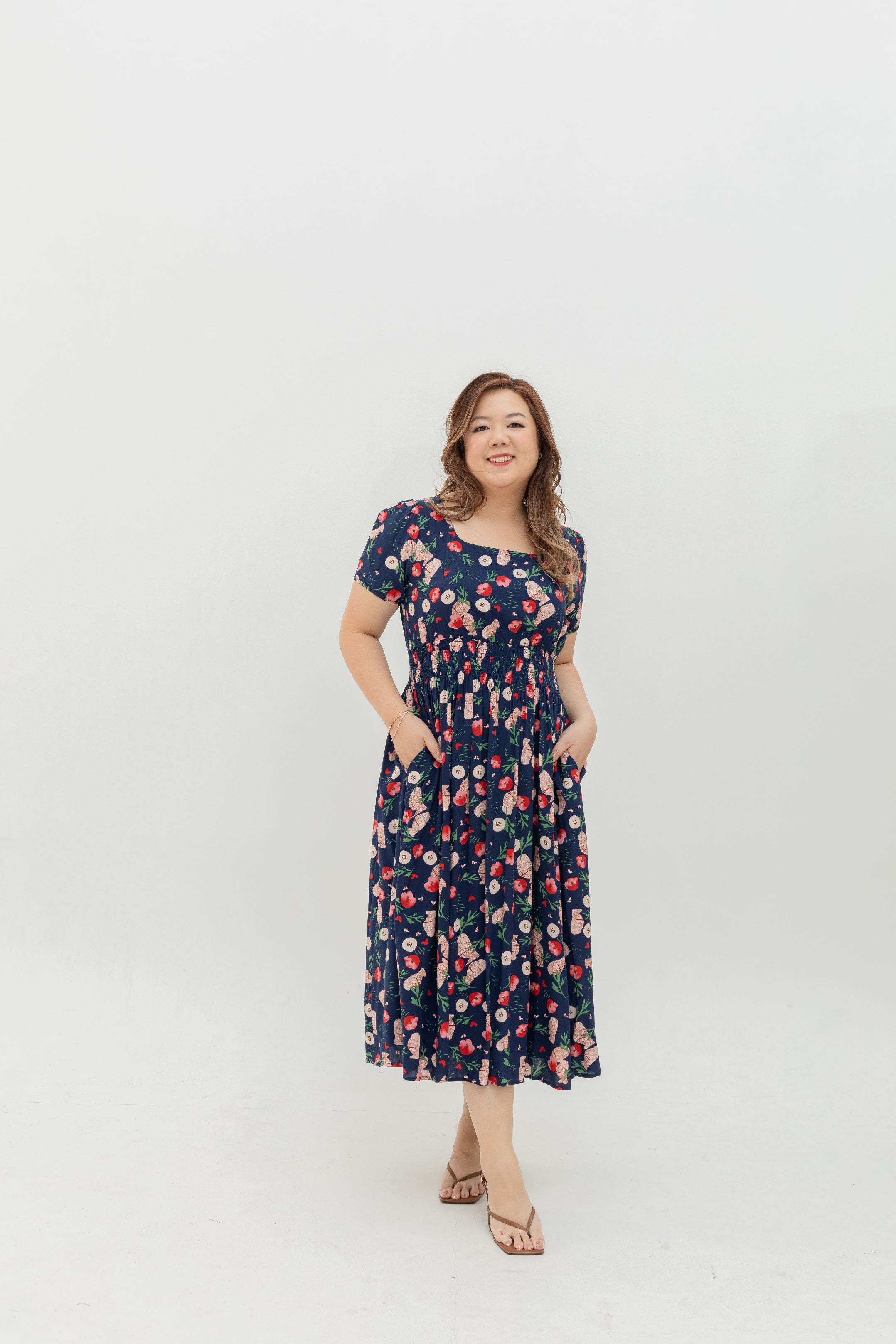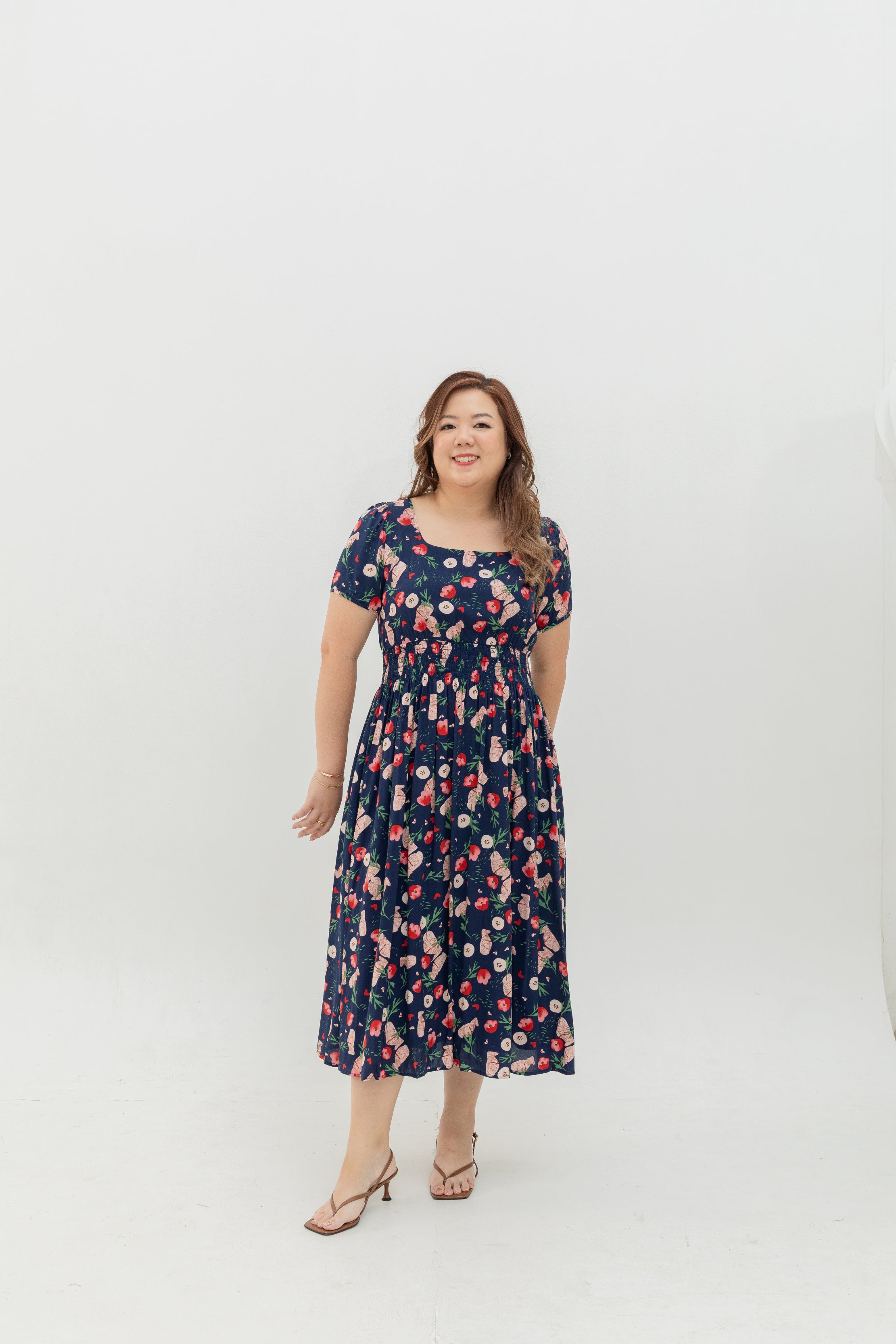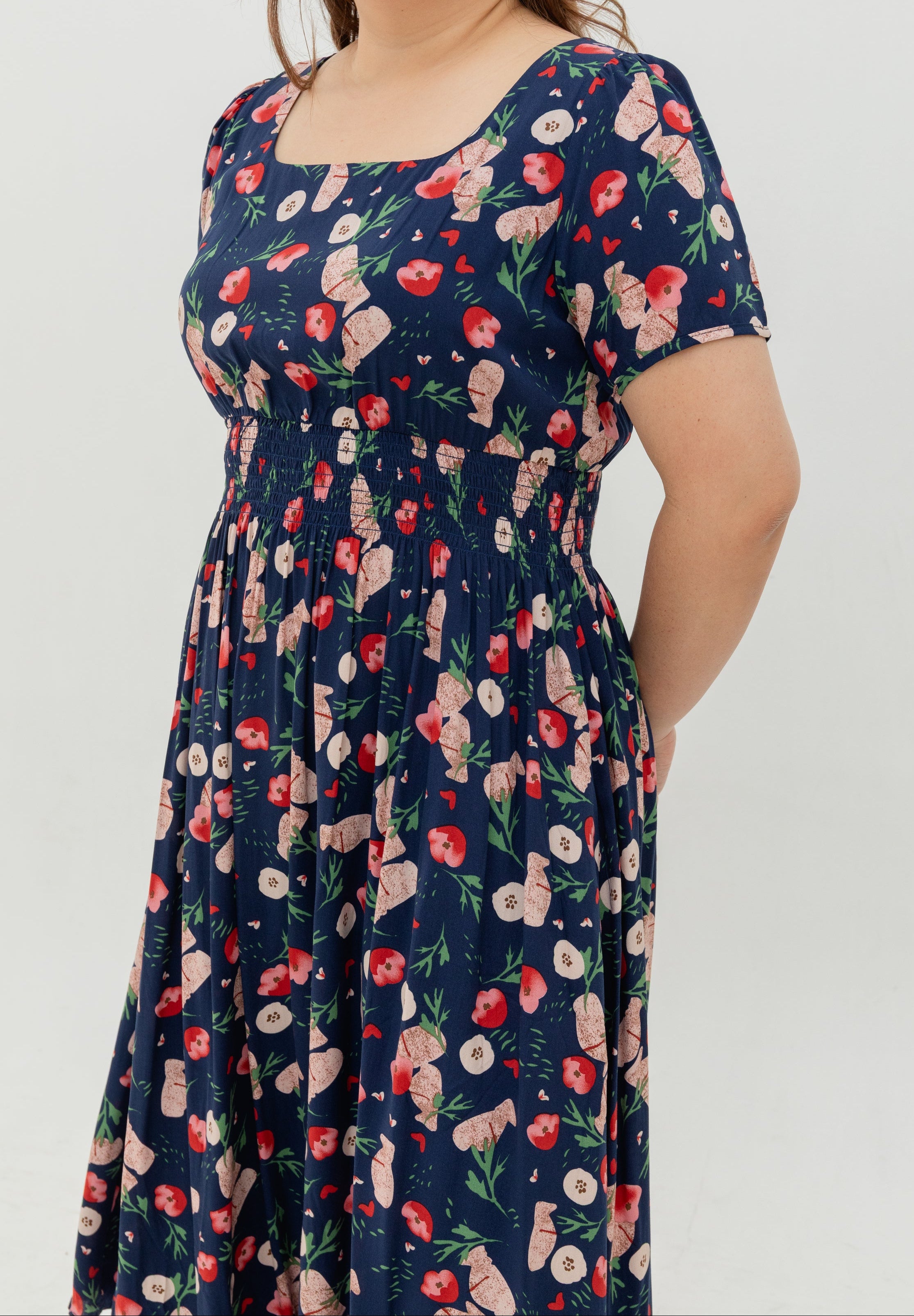 Fieldnote Smocked Waist Midi Dress (Midnight Garden)