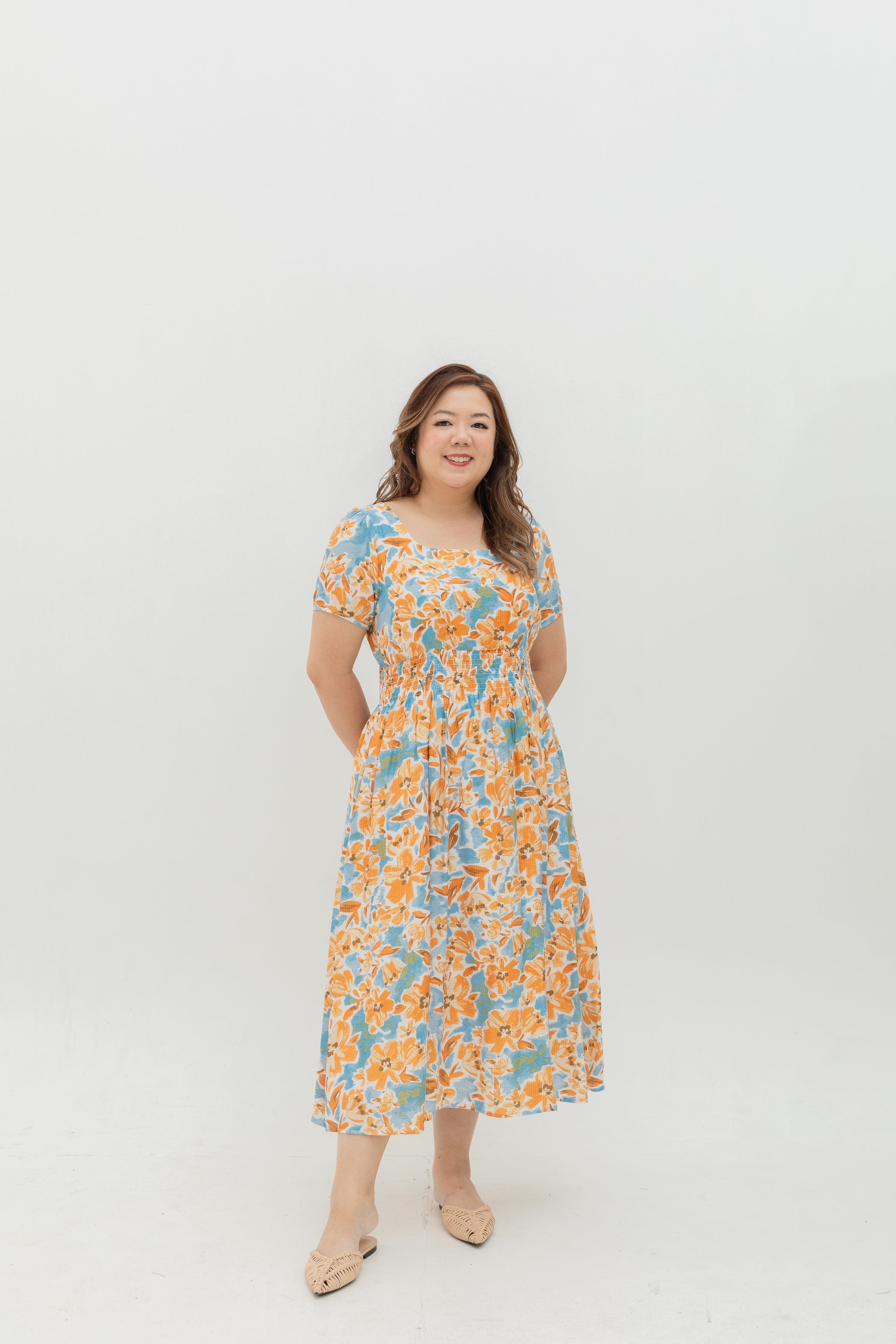 Fieldnote Smocked Waist Midi Dress (Sunrise Bloom)