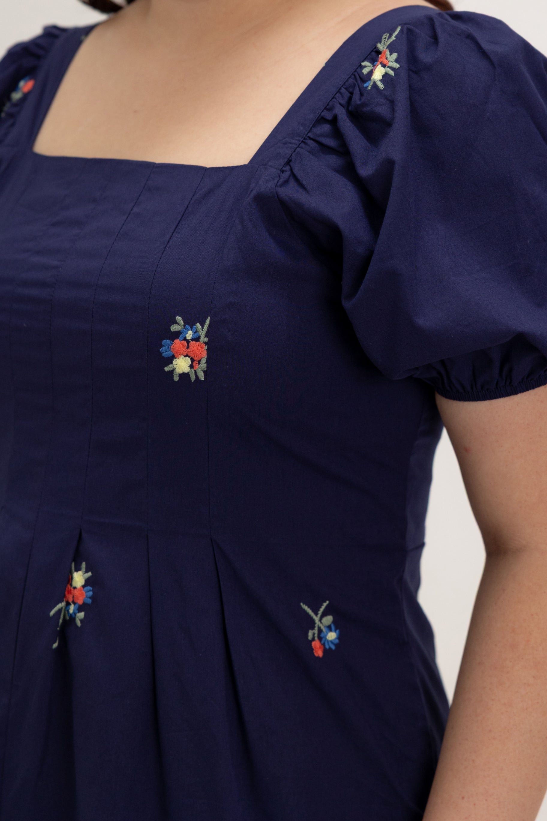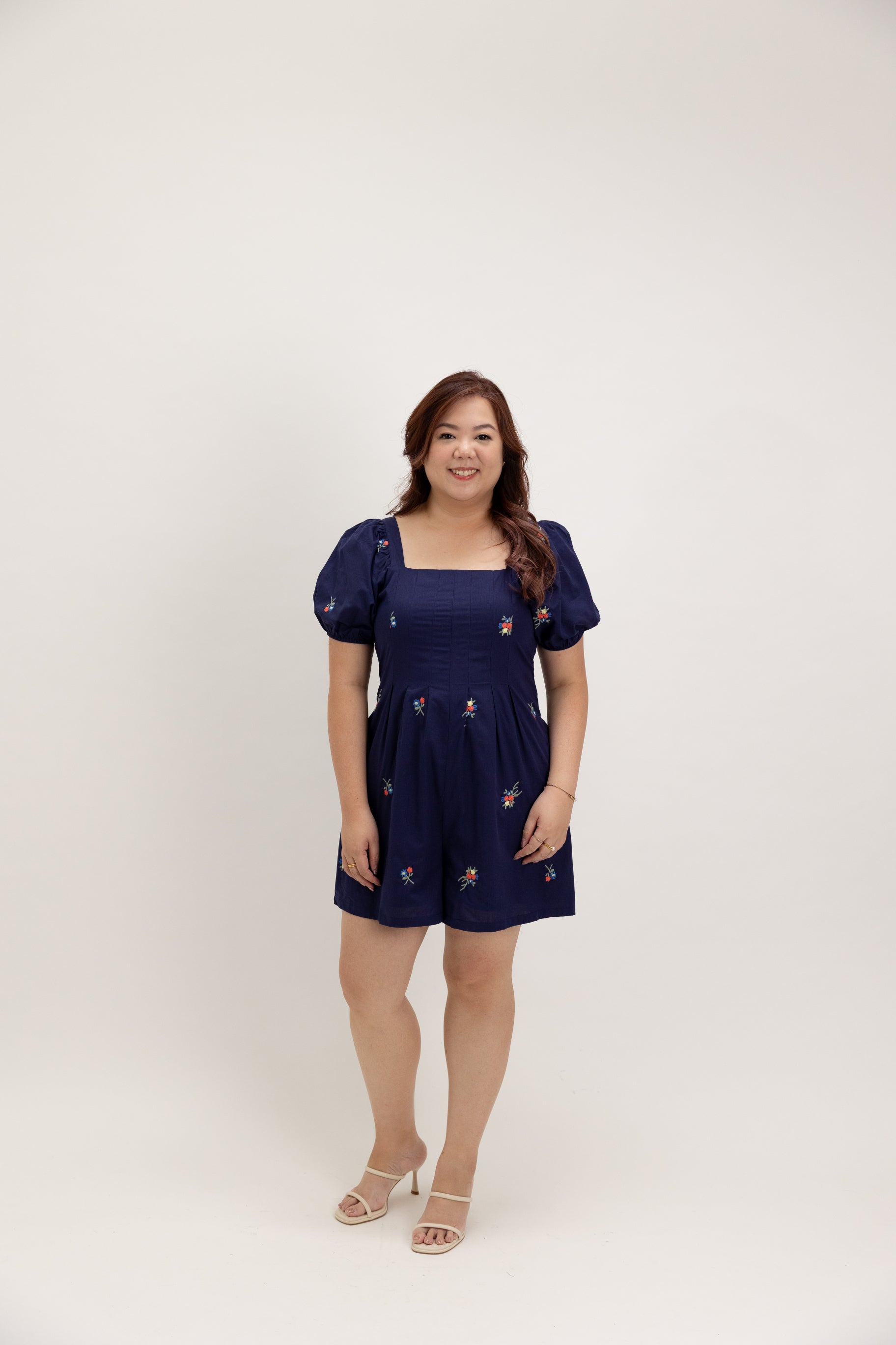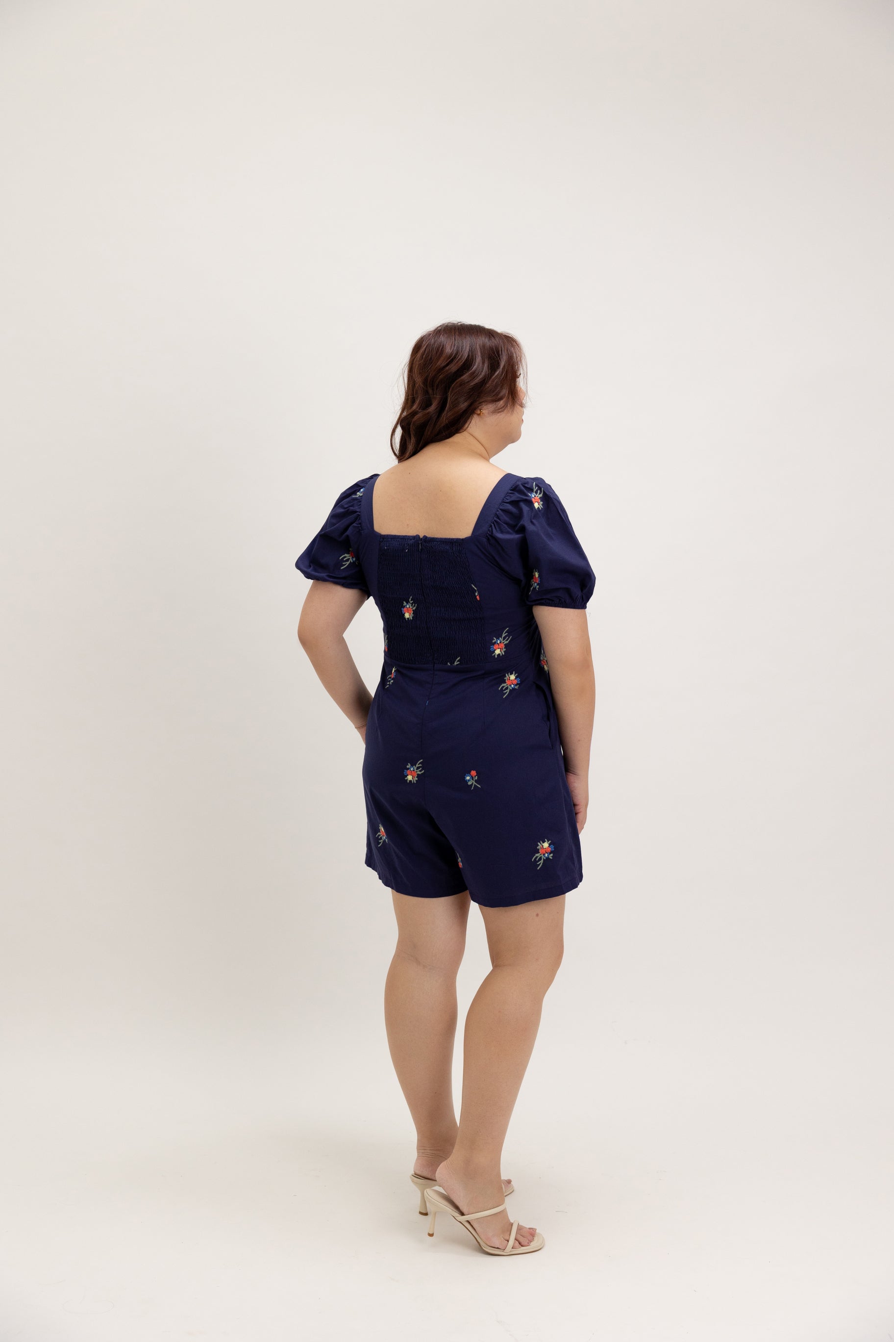 Front Panel Smock-back Romper (Indigo Embroidery)