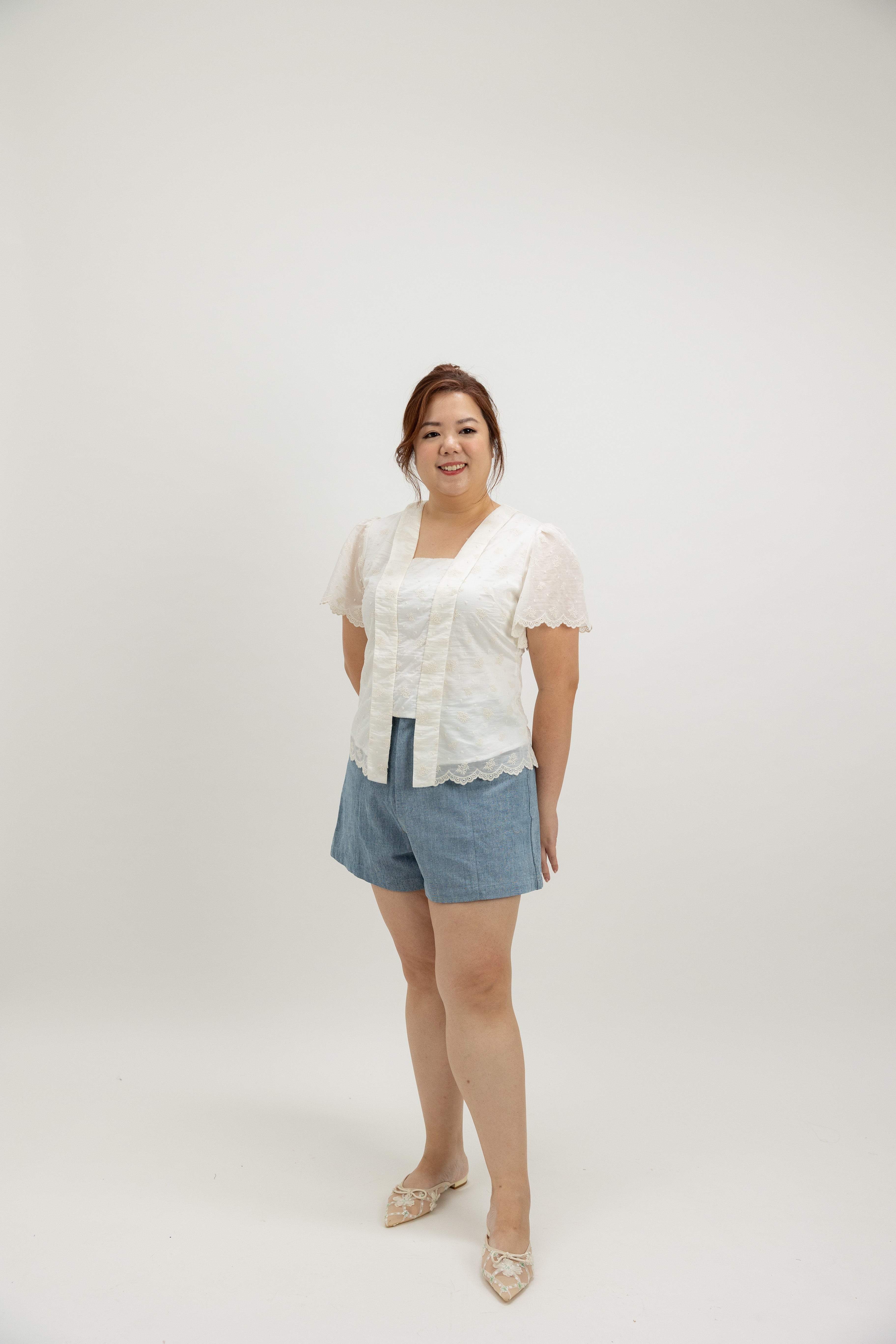 Alternatively, style it with denim jeans, shorts, or neutral-toned shorts for a relaxed and laid-back look—ideal for shopping, brunch, or casual dates.