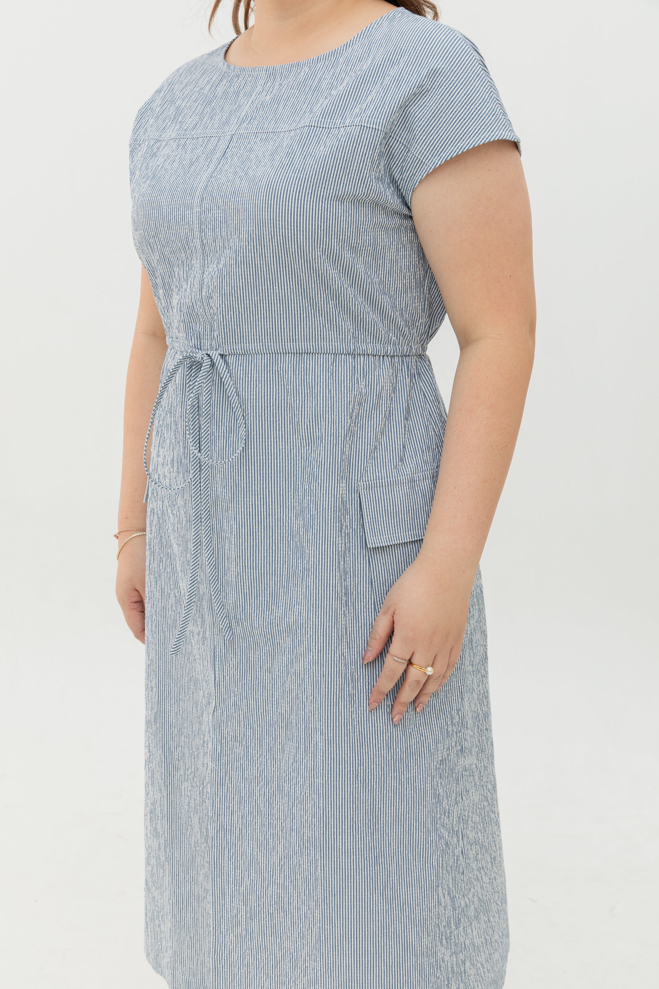 Effortlessly tailored with a touch of everyday ease, the Maven Stripe Dress brings structure and comfort together in one flattering silhouette. Designed with vertical stripes that naturally elongate the figure, it creates a flattering, lengthened silhouette.