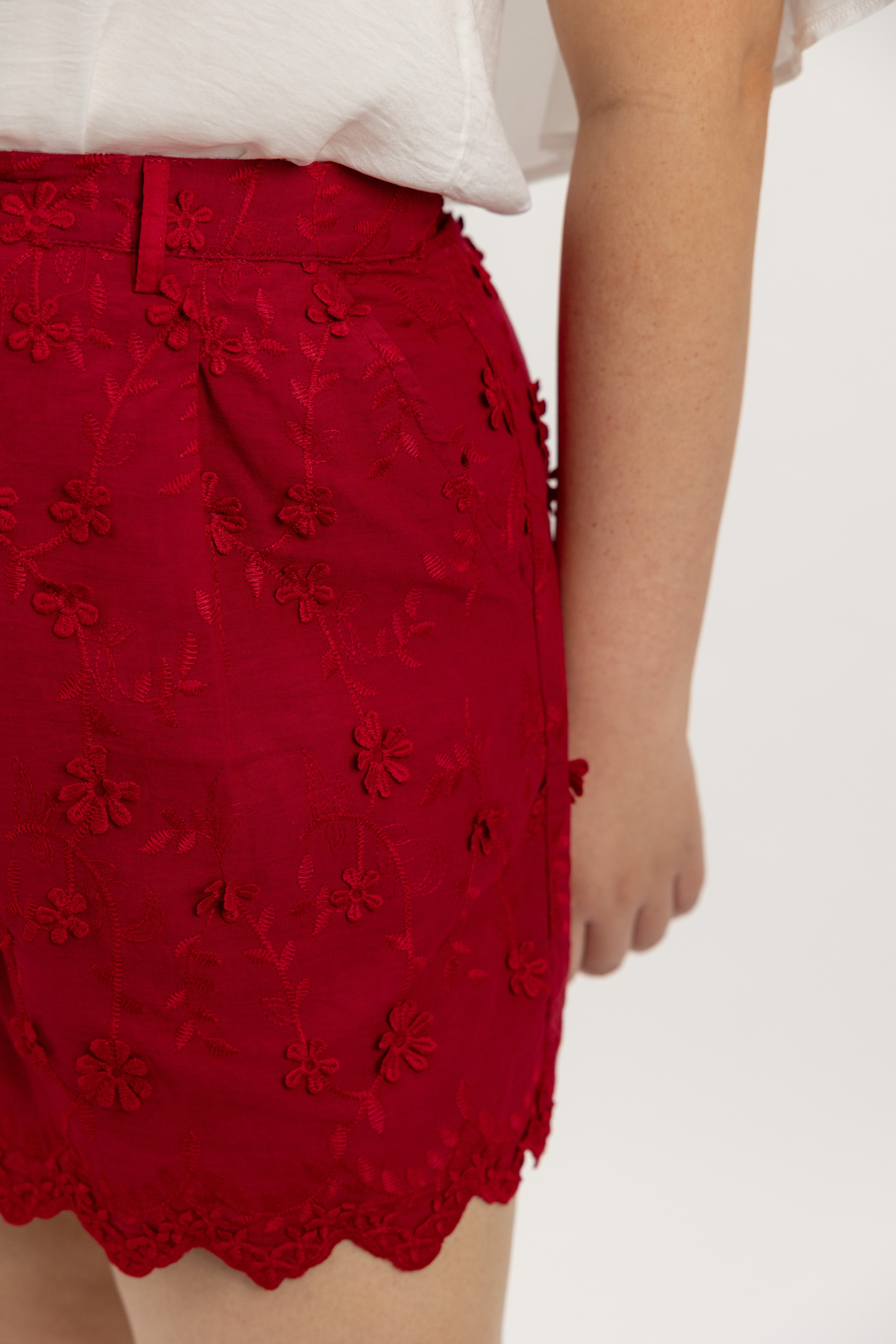 Petalwork 3D Lace Scallop Shorts (Auspicious Red) - ELTWINE