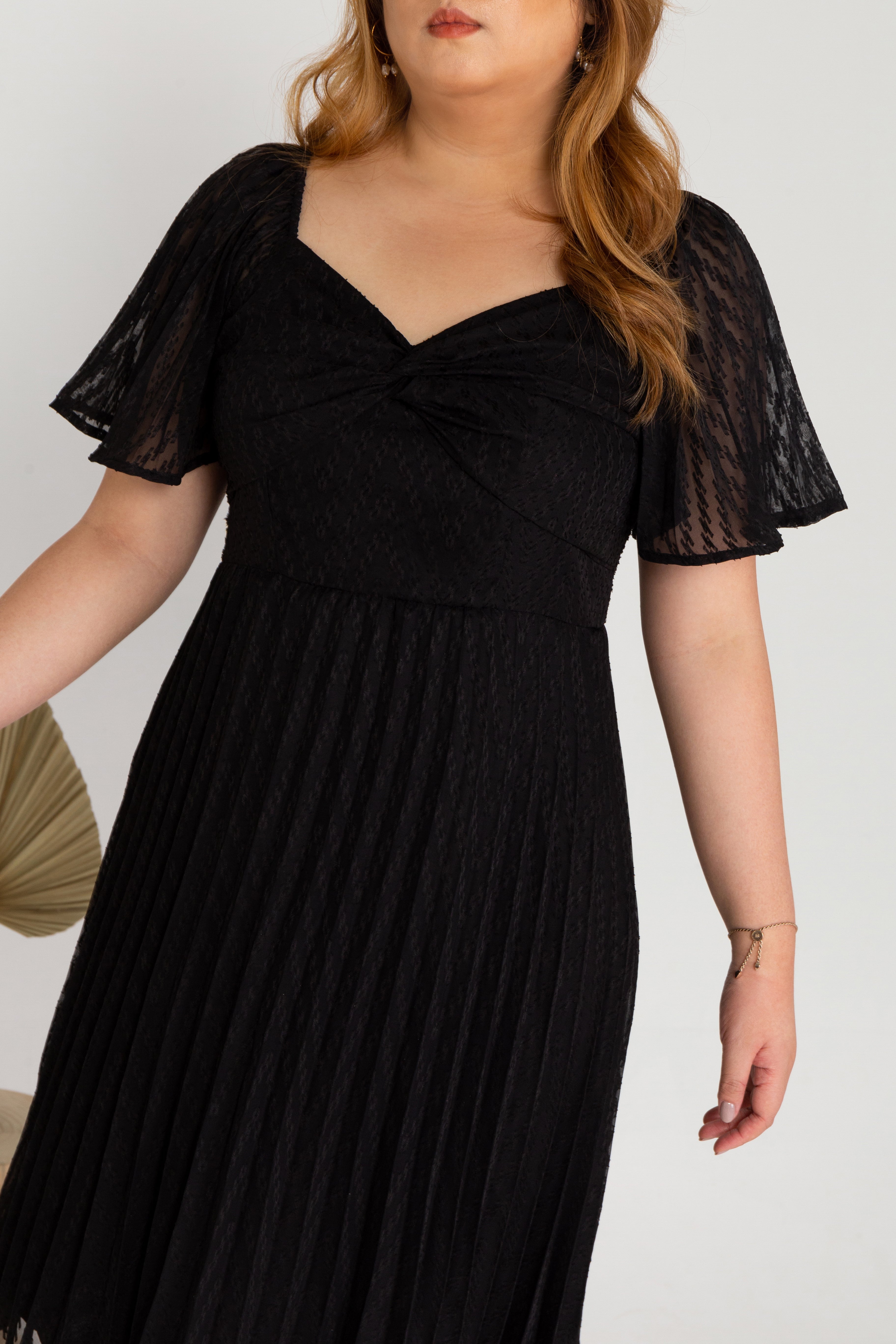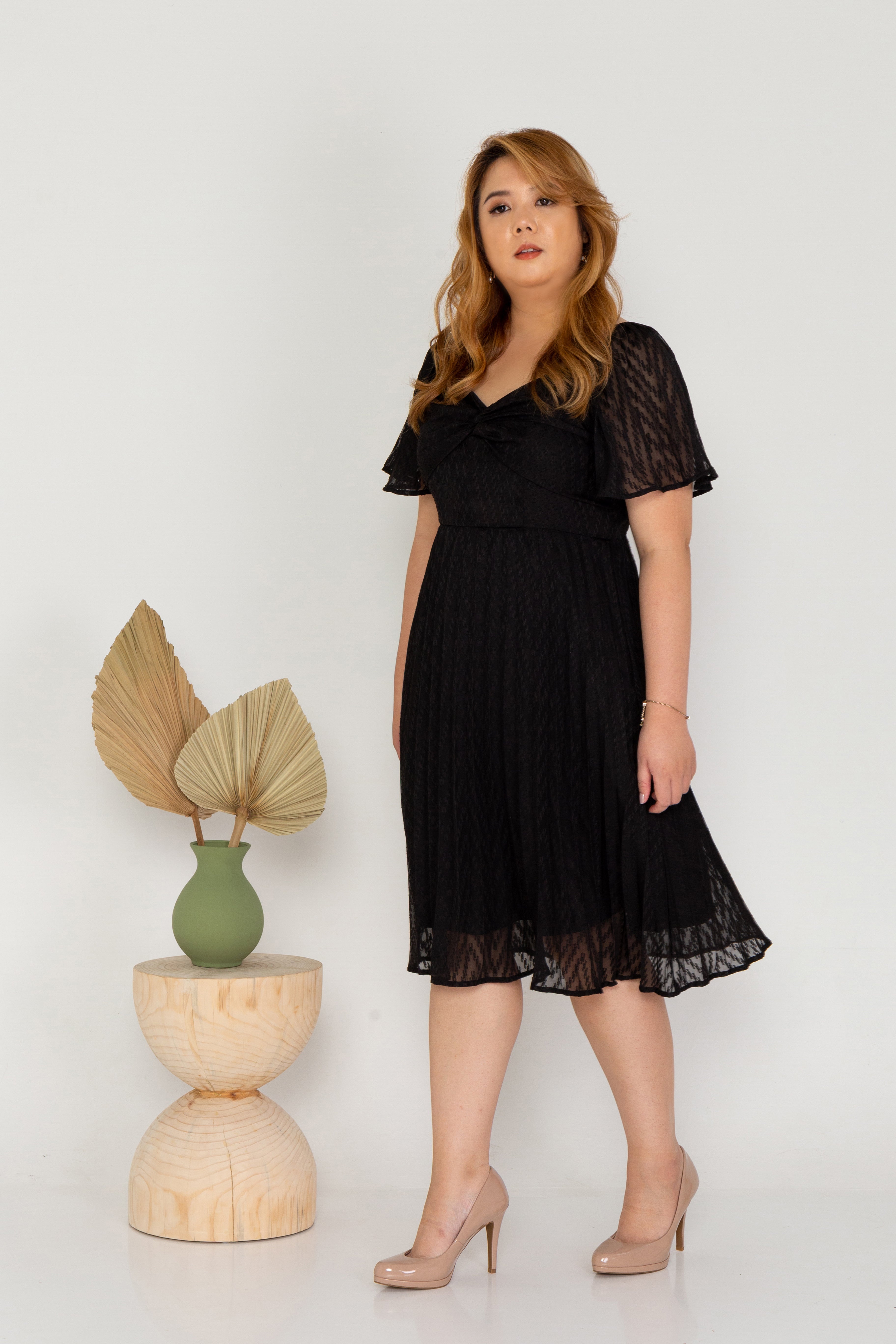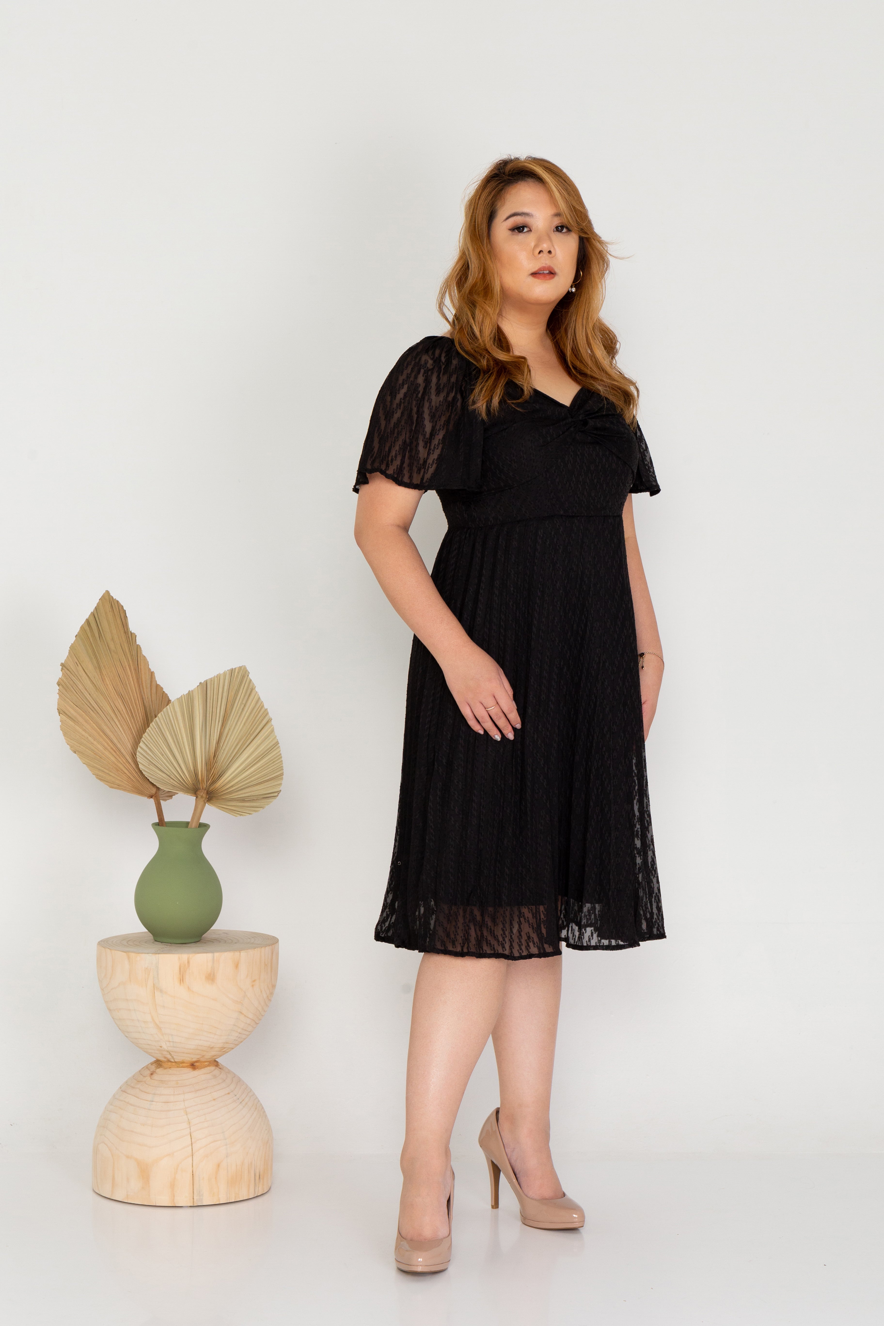 Pleated Textured Dress (Black)