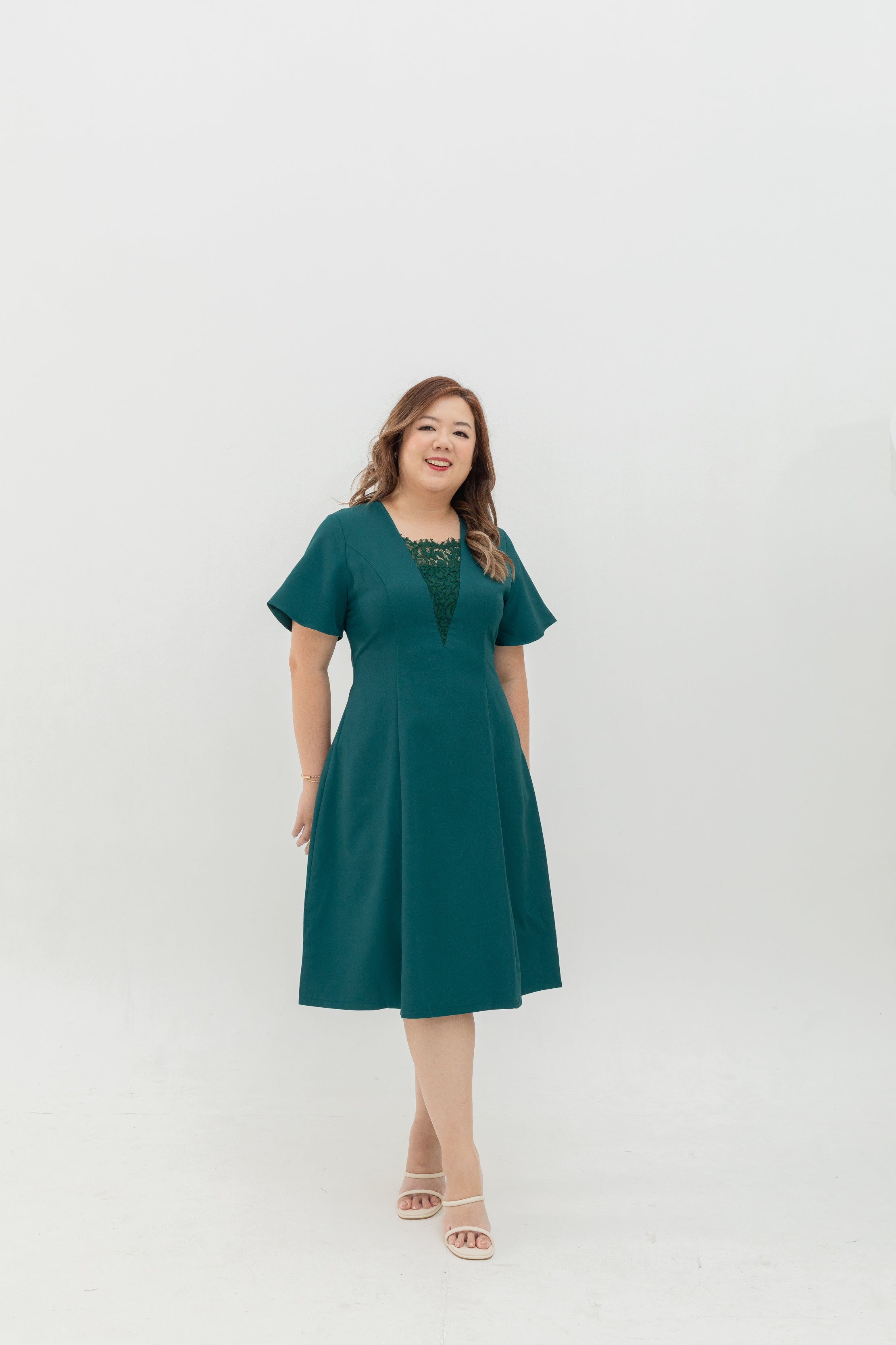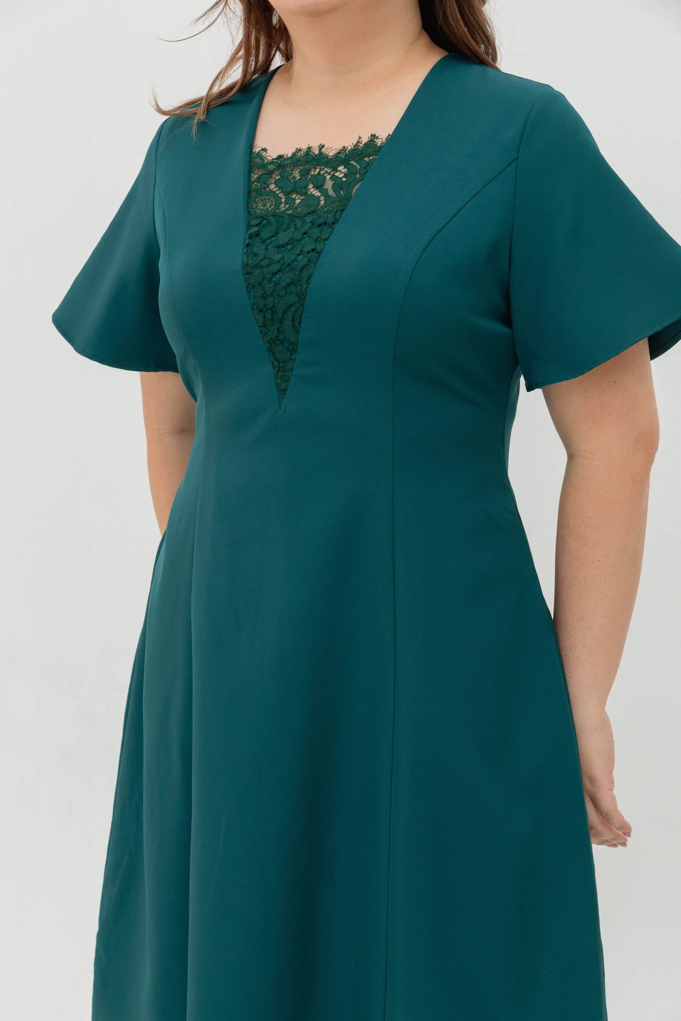 The lace-framed neckline adds softness, while seam-guided shaping flatters curves comfortably without feeling restrictive.