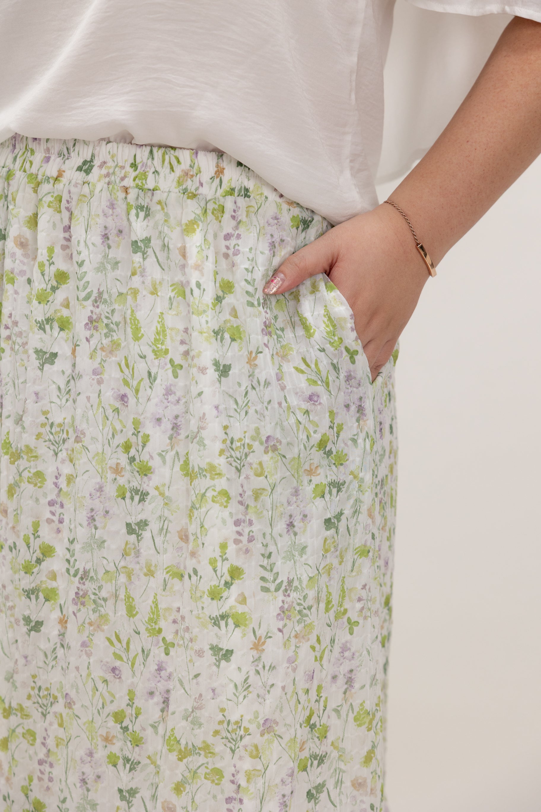 Wildbloom Iron-Free Elastic Waist Skirt (Mint Bloom)